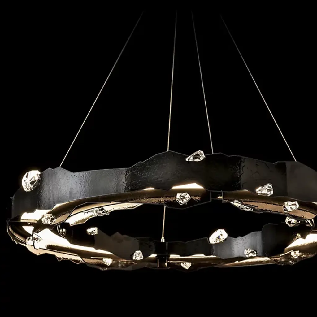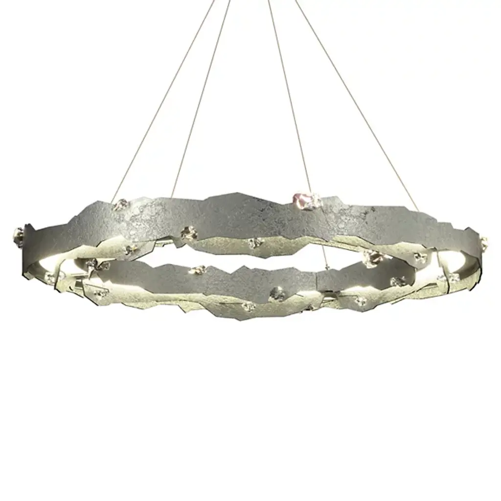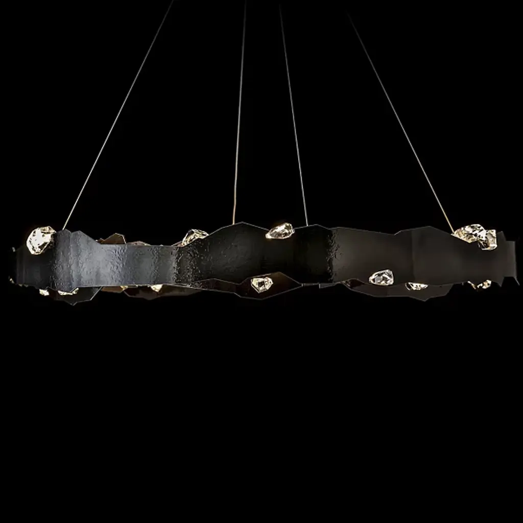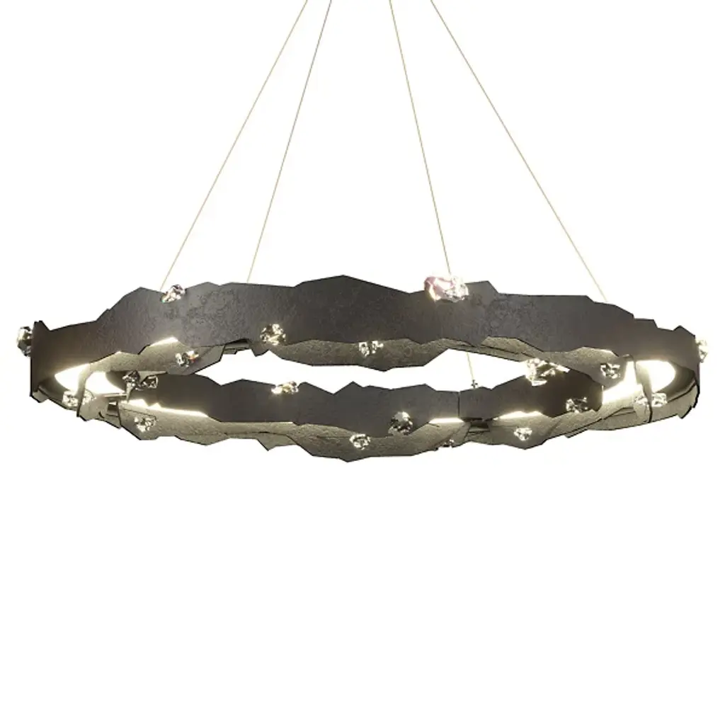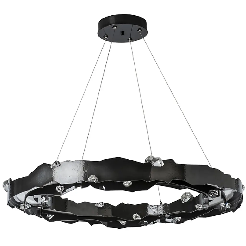 Experience the best of industrial design with the Trove LED Circular Pendant from Hubbardton Forge. Crafted with precision and passion, this pendant lighting fixture features a striking ring shape made from durable steel and accented with glass elements. The state-of-the-art integrated LED technology ensures efficient illumination that enhances the ambiance of any room. Its versatile design is perfect for various spaces, such as dining rooms, living rooms, or entryways. Hand-crafted in Vermont, USA, each piece displays the unique touch of skilled artisans.