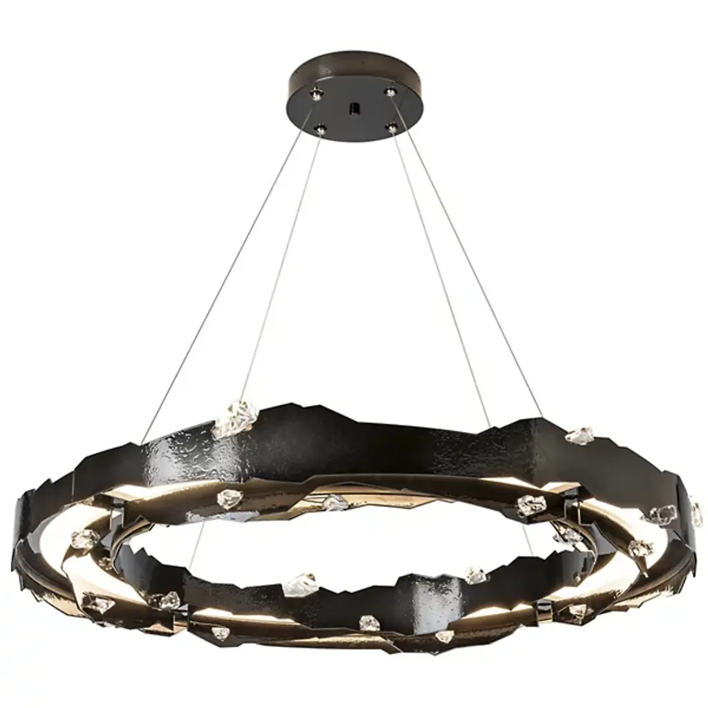 Experience the best of industrial design with the Trove LED Circular Pendant from Hubbardton Forge. Crafted with precision and passion, this pendant lighting fixture features a striking ring shape made from durable steel and accented with glass elements. The state-of-the-art integrated LED technology ensures efficient illumination that enhances the ambiance of any room. Its versatile design is perfect for various spaces, such as dining rooms, living rooms, or entryways. Hand-crafted in Vermont, USA, each piece displays the unique touch of skilled artisans.