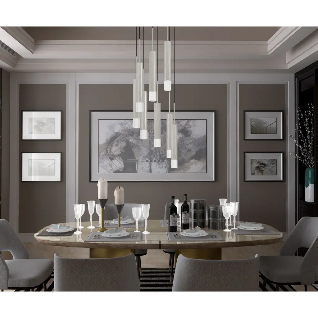 Troy integrated LED dimmable hexagon aluminum casted 8 lights pendant with glass diffuser