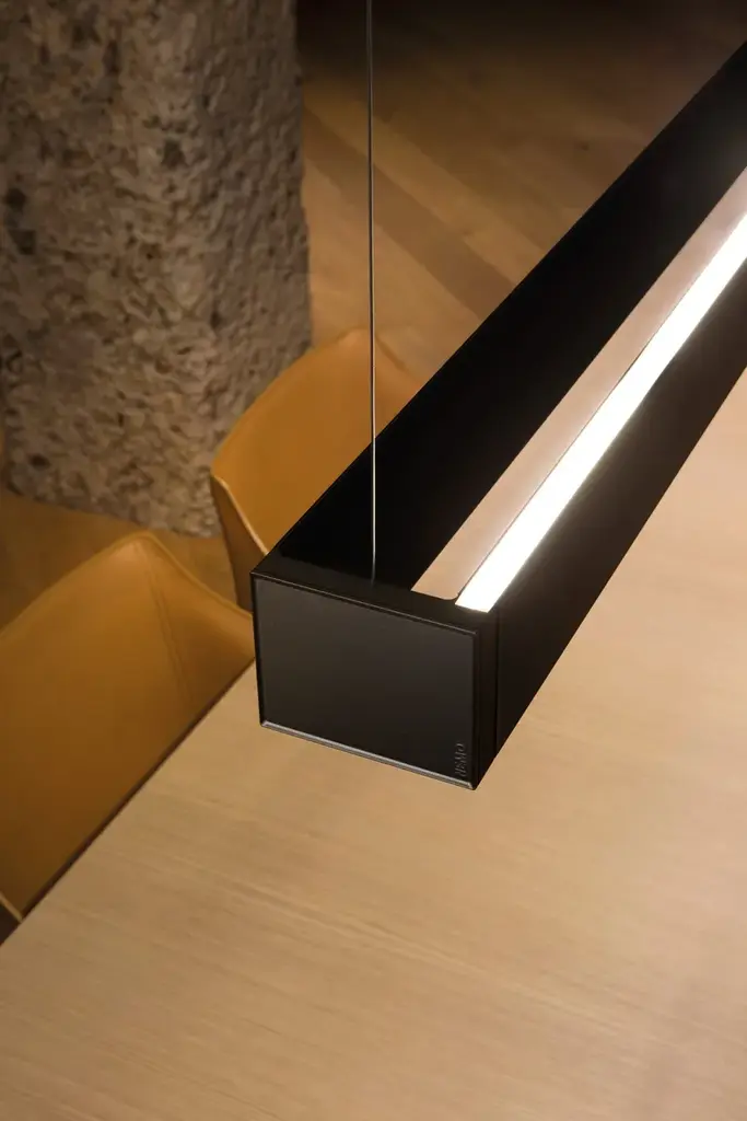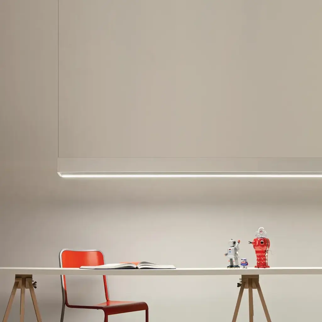 Horizontal and vertical pendant lamp with double linear LED source. Body in extruded aluminium. Heads in injection molded blended polymeric material, with diffusers in opal metacrylate. Structure painted in matt white, matt black and titan grey. Horizontal version available with uplight and downlight flood, or total up and total down. Dimmable.Source: linear LEDTotal power: 2x41WEmission: down+down / up+down / up+upSwitching: dimmable, push on boardTension: 110/240VColor temperature: 2700K / 3000KLuminous flux: 2 x 4080lmTyp cri 83Energy class A+Materials: aluminium + PCNotes: metal cable lenght 3m, electrical cable lenght 5mNet lamp weight 4,5 KgColors:black/whitewhite/whitetitan grey/white