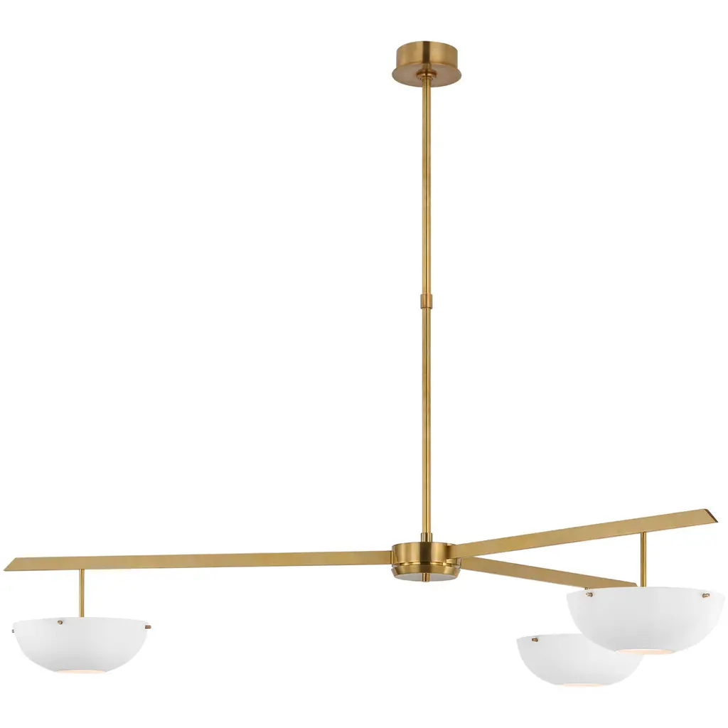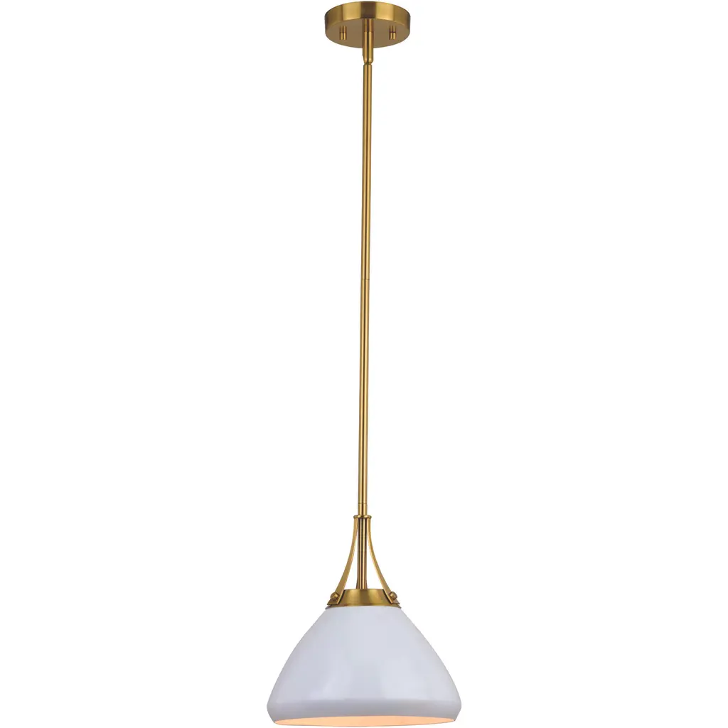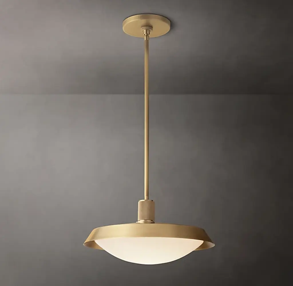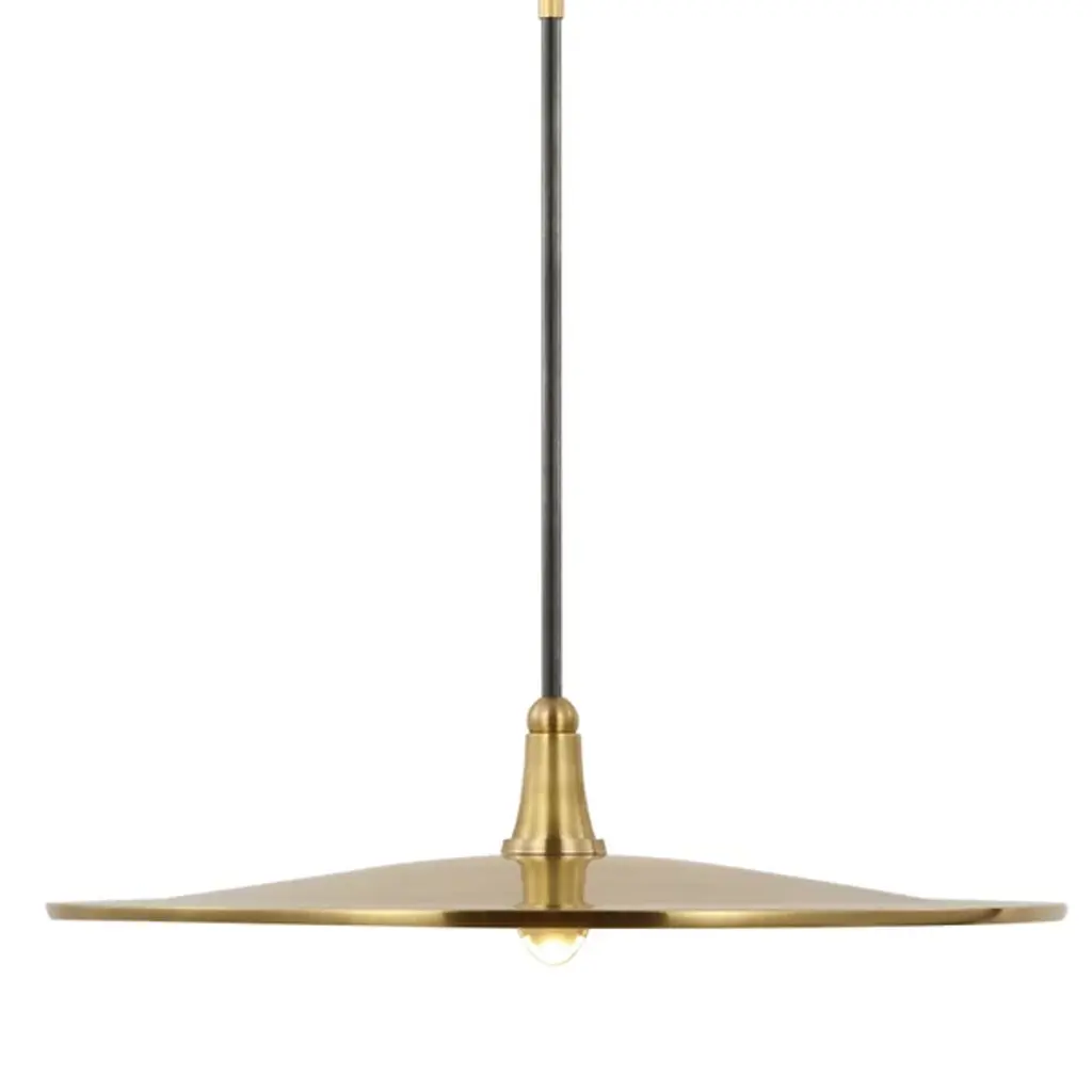 The Truesdell LED Pendant from Visual Comfort Signature provides a tasteful modern appeal to interiors. The Thomas O’Brien design extends from a bevel-edged disc canopy; it sends down a jointed, central stem to a conical housing holding strong LED lamping. A shallow dish shade flares out around the lamping, providing a clean-surfaced contrast to the rich metal above and reflecting a radiant warmth evenly around the fixture