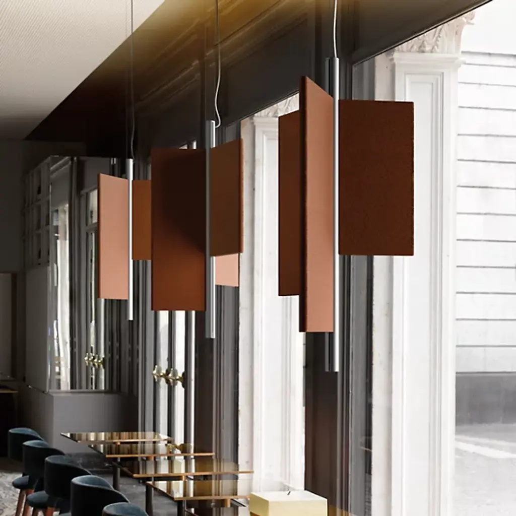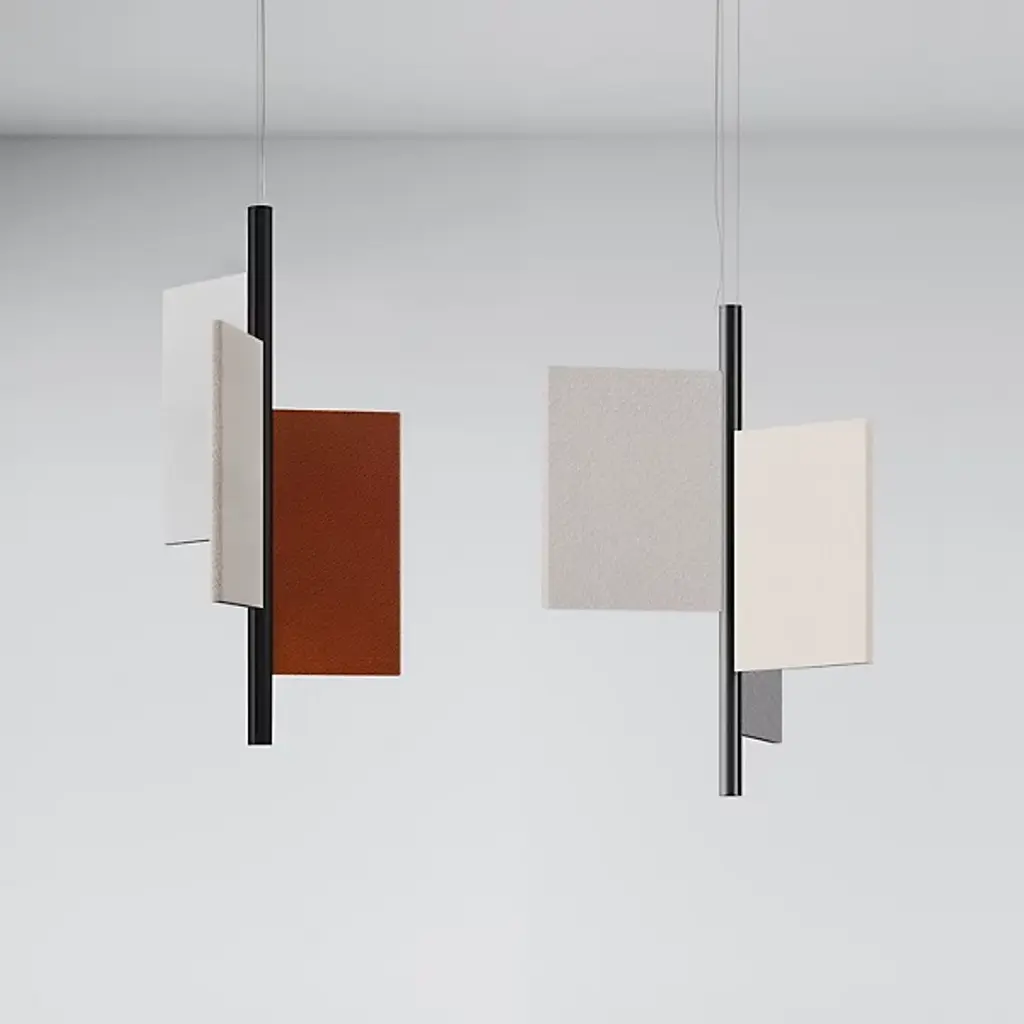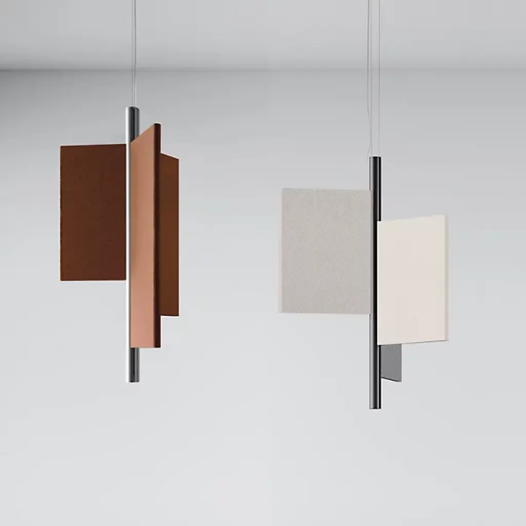 The Trypta Acoustical Fixture LED Pendant from Luceplan is designed by Stephen Burks. It is crafted with precision from high-quality aluminum. This pendant boasts acoustic panels positioned at 120 degrees for a soundproofing effect. The shade material comprises aluminum, acoustic material, and flame-resistant fabric, ensuring optimal acoustical performance while exuding contemporary elegance. This sloped-ceiling adaptable fixture is made in Italy. Trypta’s brilliant, integrated LED boasts adjustable brightness when paired with a 0-10V dimmer.