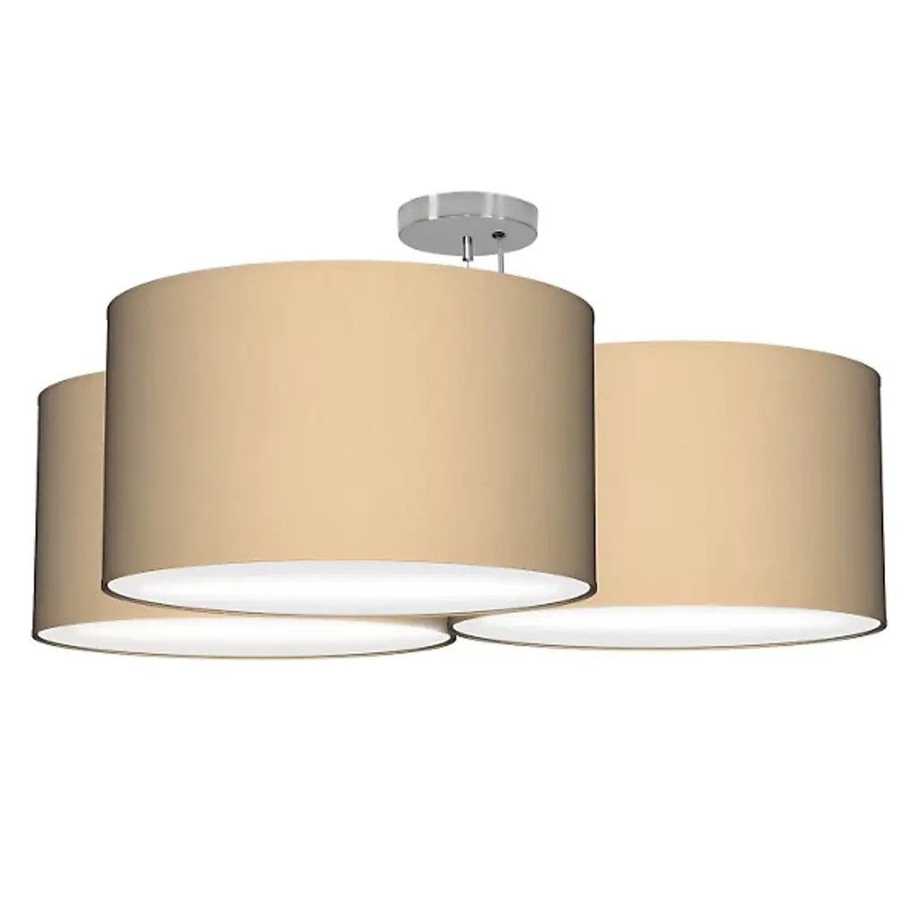 The Seascape Lamps Tryptic Pendant builds on the classic drum shape, presenting a trio of enclosed shades in a broad range of colors and textures. The shades are tightly bundled at the center, creating a sort of triangular formation that increases the amount of downlight created. Each drum is enclosed with a frosted white diffuser at the base, contributing a level of comfort and diffusion to the functional light.