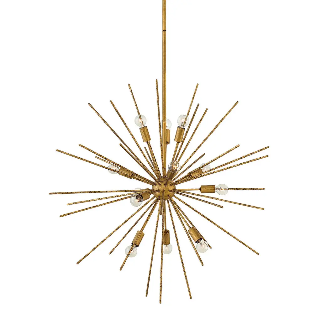 A seamless blend of vintage sophistication and contemporary clout, Tryst offers a striking mix of design elements. Hammered Bronze stems radiating from a spherical body shimmer as the light dances across the facets, creating a robust yet airy effect. Features