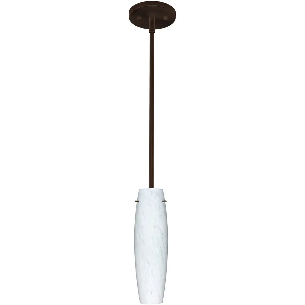 The Tu Tu is a slender yet shapely handcrafted glass with a open top and bottom. Our Carrera glass is a classic yet modern décor that gives off a soft white light. Clear molten glass is rolled in alabaster powder like frit, and then blown into shape with a semi-clear frosted white inner finish. This décor is created by rolling molten glass in small bits of white called frit. The smooth satin finish on the clear outer layer is a result of an extensive etching process. This blown glass is handcrafted by a skilled artisan, utilizing cenTu Tury-old techniques passed down from generation to generation. Each piece of this décor has its own artistic naTu Ture that can be individually appreciated. The stem pendant fixTu Ture is equipped with an adjustable telescoping section, 4 connectable stem sections (3", 6", 12", and 18") and low Profile flat monopoint canopy. These stylish and functional luminaries are offered in a beautiful brushed Bronze finish.