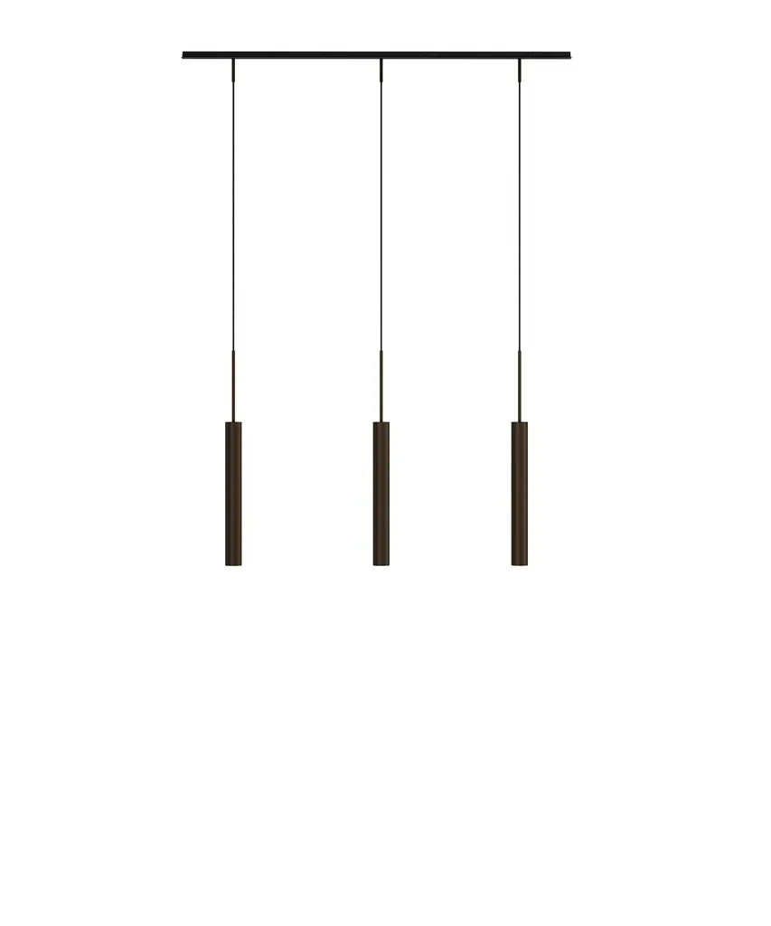 The Tubulaire Rail Pendant combines industrial charm with a sleek and modern design. A visually striking lighting solution engineered for a range of spaces, three or five large pendant lights in reeded, anodized aluminum with a bronzed brass surface finish deliver versatile downward light ideal for both ambient illumination and task-oriented activities.