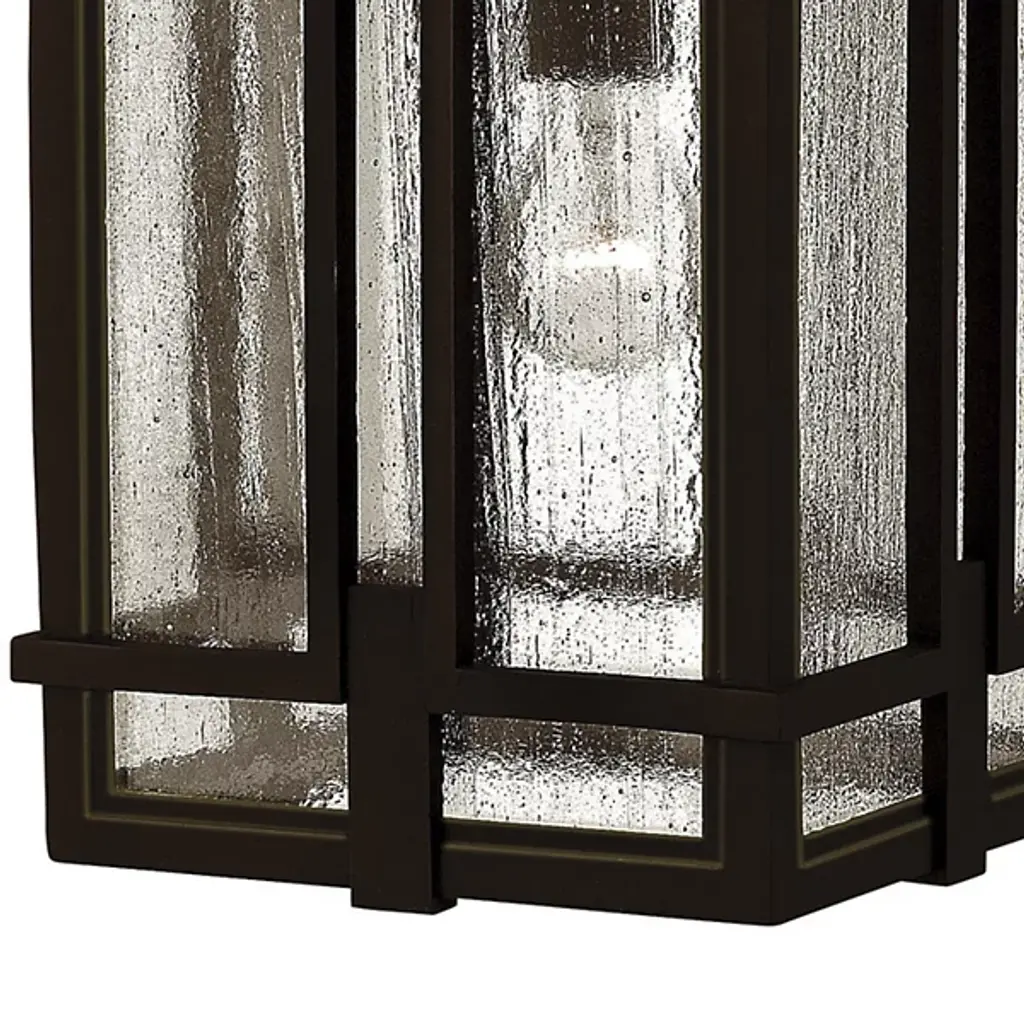 Lend a soft glow to covered outdoor spaces with the tasteful, traditional lines of the Tucker Outdoor Pendant from Hinkley Lighting. Suspended from a square-based, trapezoidal canopy via a short length of chain, it sets a single, damp-listed lamp inside a Mission-influenced lantern structure that pairs a vertically-oriented rectangle frame with a shallow, four-sided roof. A horizontal diffuser of clear seedy glass surrounds the lamping on the inside of the aluminum frame, cutting glare from the lamping and transforming it into a mix of warm ambiance to the sides surrounding a pleasing downlight cast through its open base.