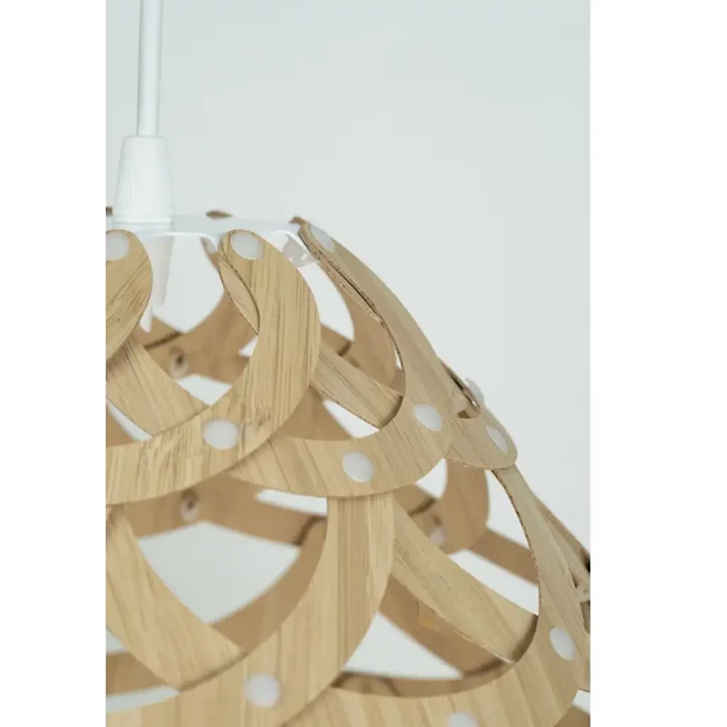 Cleverly crafted, with a personal touch. The Tui Pendant from David Trubridge pays homage to the distinctive spirit of the playful Tui, a playful bird native to Aotearoa or New Zealand, known for dodging between branches while emitting a signature call. The fixture itself is a deceptively simple assembly that ships as a flat kit for minimum environmental impact and assembles easily, incorporating potent lamping that sits beneath a single cable and powder-coated aluminum fittings. This lamping and its housing rest inside an open, conical structure made of bamboo plywood curves joined together at multiple points. Its final shape resembles one of the unique white wattles on the throat of the Tui that help channel its call, and it gentles glare from within while splashing out a warm pool of downlight below.