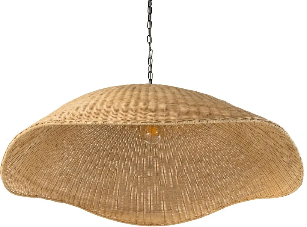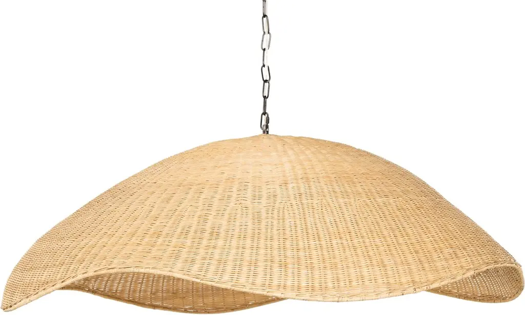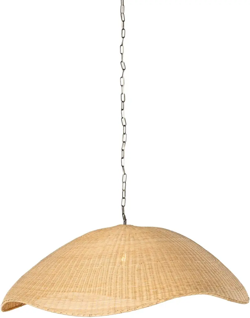 With its fluid shape, this pendant's handwoven rattan shade almost appears to float rather than hang from its slender chain. It's an ideal way to bring organic ease and a touch of the tropics to a room.
