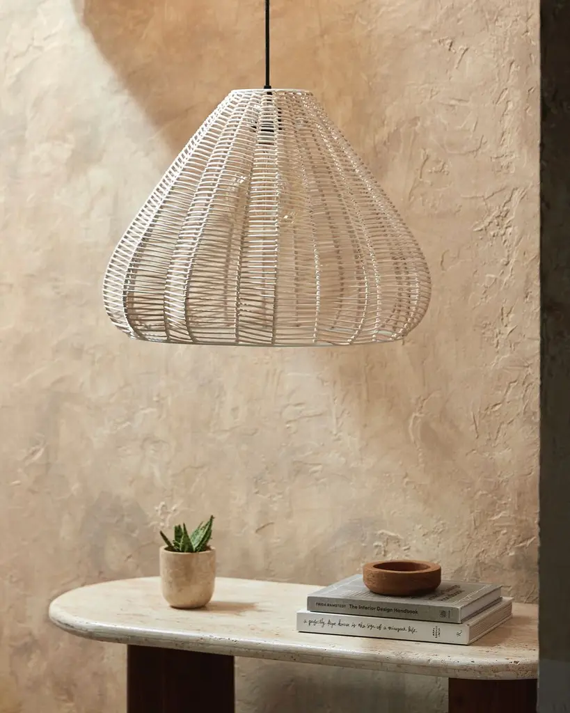 Light up your home with the modern Global-style Tulum Rattan Pendant Light. This unique piece is crafted with Rattan and Metal to create a stunning conversation starter. At 76 inches tall, this pendant light will make a big statement in any room. To keep it looking its best, use soap and avoid harsh cleaners as they may damage the finish. With its eye-catching design, this Tulum Rattan Pendant Light will instantly elevate the look of your space.