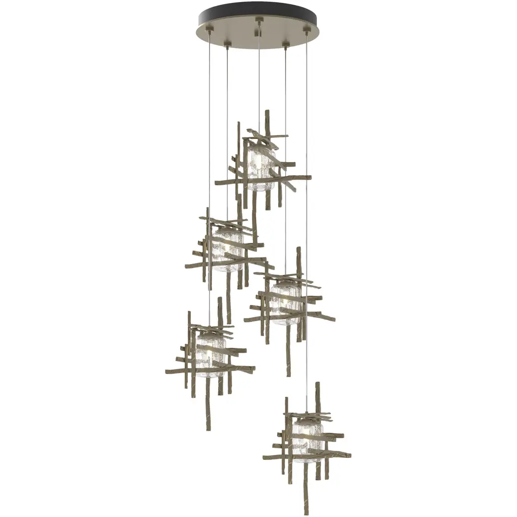An artfully crafted ceiling fixture that will give your space an instant update, the Tura 5-Light Pendant is perfect for spaces where you want a modern design. Each unique pendant is hand-textured with a trip hammer and custom dies, and made from annealed aluminum with a frosted glass shade. With the ability to customize each pendant’s length, the Tura 5-Light can go from a shortened cable semi-flush to a staggered longer-length for cascading light.