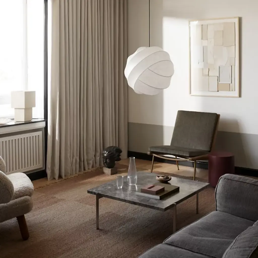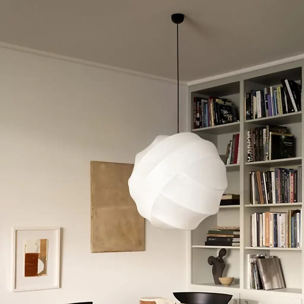 Add a dynamic, sculptural character to intimate spaces with the Turner 65 Pendant from Pholc. It puts a natural spin on minimalist design. This refined piece was engineered by Broberg & Ridderstråle to illustrate a stylized orbital appearance. It descends via a slender cable from an understated dome canopy. It sets its potent LED lamping behind a spherical shade assembled from coordinated strips of polymer-sprayed wire, whose texture resembles that of a cocoon. This artful material mellows glare into a gentle, even glow across its surroundings.