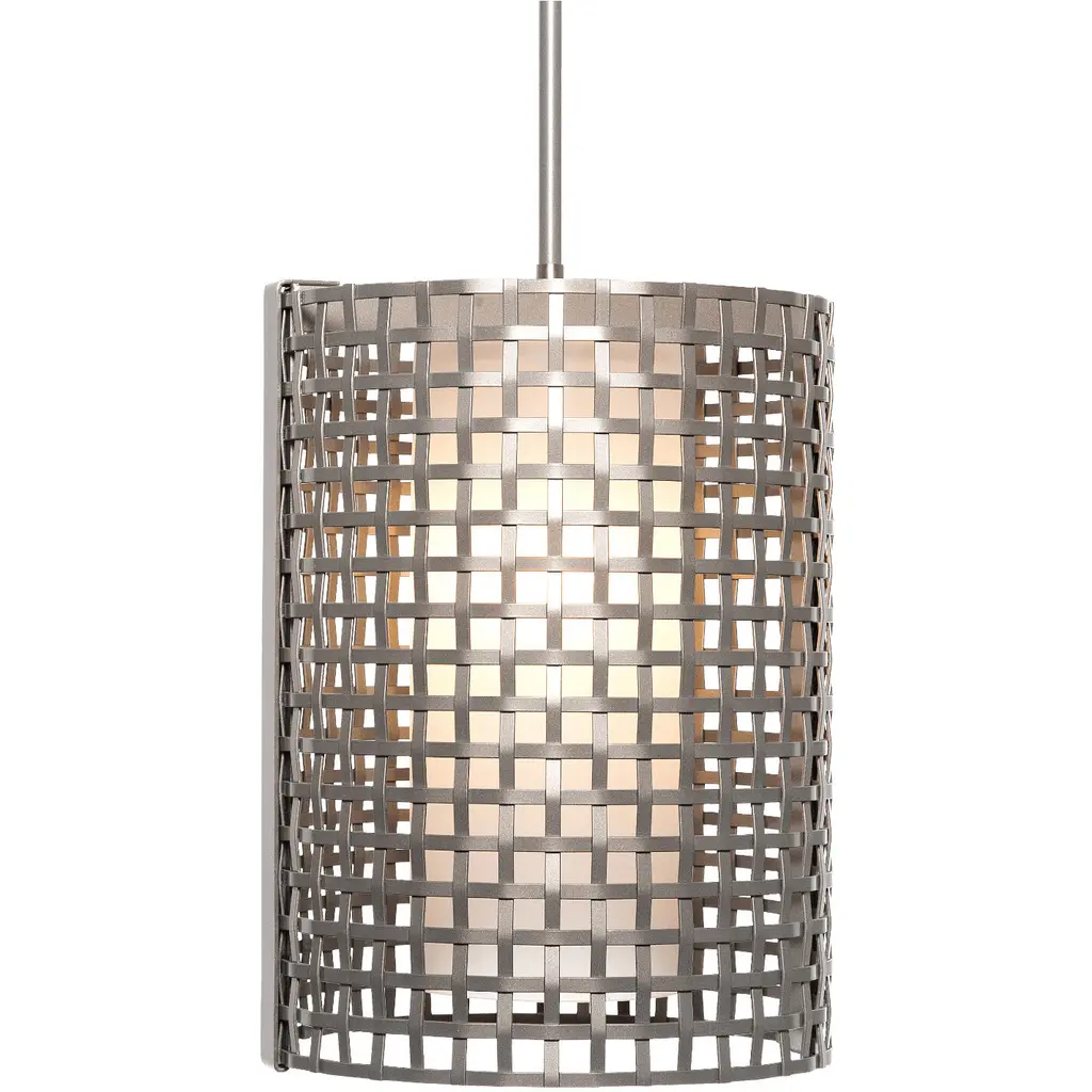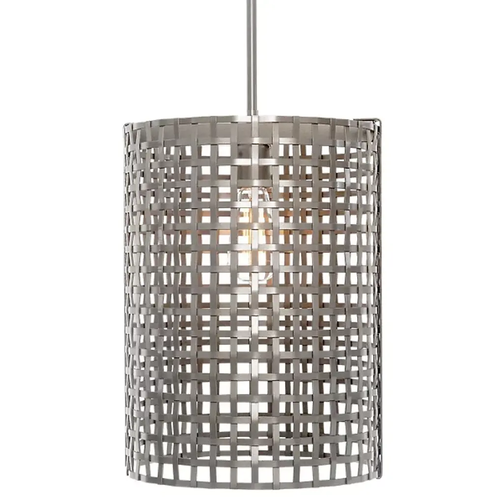 Give your living space a dynamic, industrial edge with the Tweed Oversized Pendant by Hammerton Studio. Its classic silhouette features an outer circle of woven steel that either surrounds a seamless Frosted glass shade or exposed lamping depending on preference. Once on, an internal light source permeates through the semi-transparent grid, creating a gentle ambiance with a subtle, shimmering effect. A tasteful addition over counters and tables.