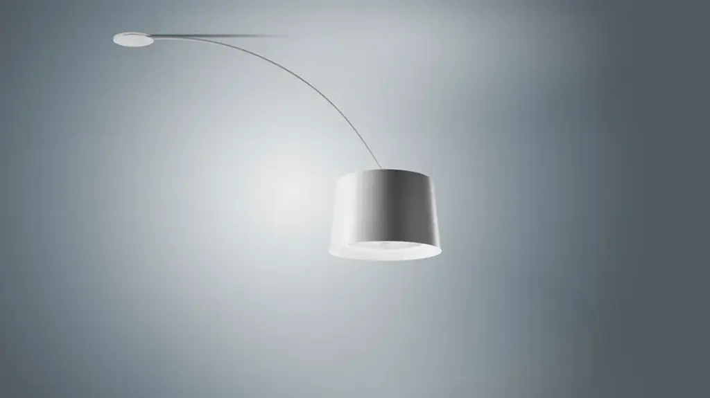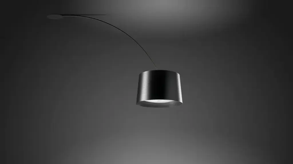 Twiggy is a pendant lamp made of coated fiberglass-based composite material, PMMA, polycarbonate, coated metal.LIGHT SOURCE220/240V3x77W E27No dimmableIP 20Bub not includedA slender, flexible arc, an ample and essential shade: two design themes taken from the floor version of the iconic Twiggy, shifted to the ceiling. The lamp offers maximum flexibility of positioning: the arm can rotate 330°. For direct lighting of the zone below the unit, and ambient light reflected on the ceiling.