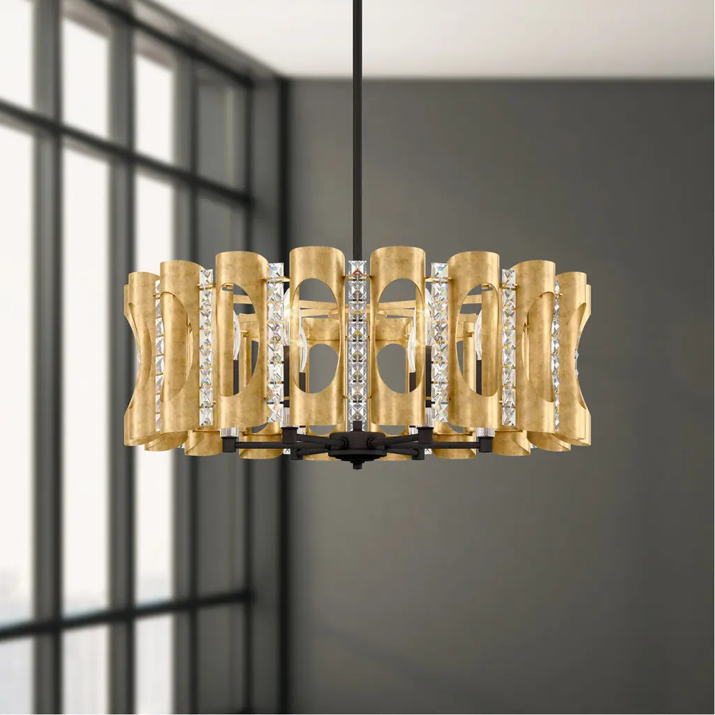 Twilight 6 Light Heirloom Gold Pendant Ceiling Light In Optic, Adjustable Height