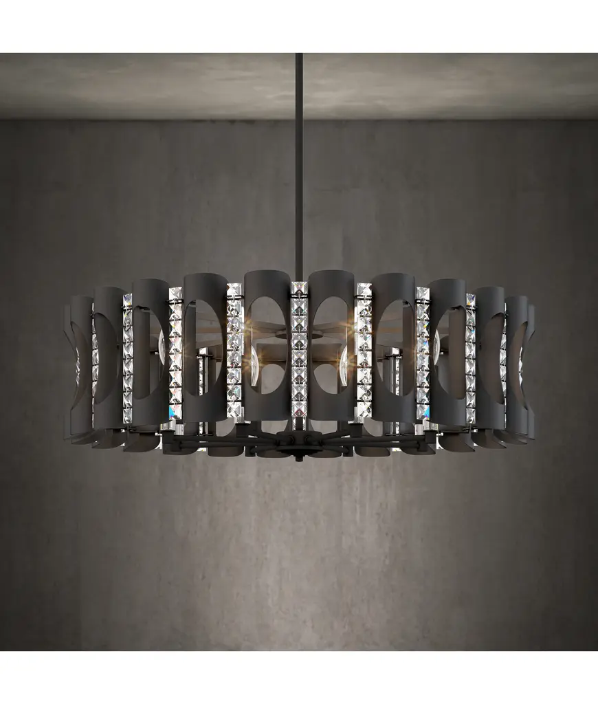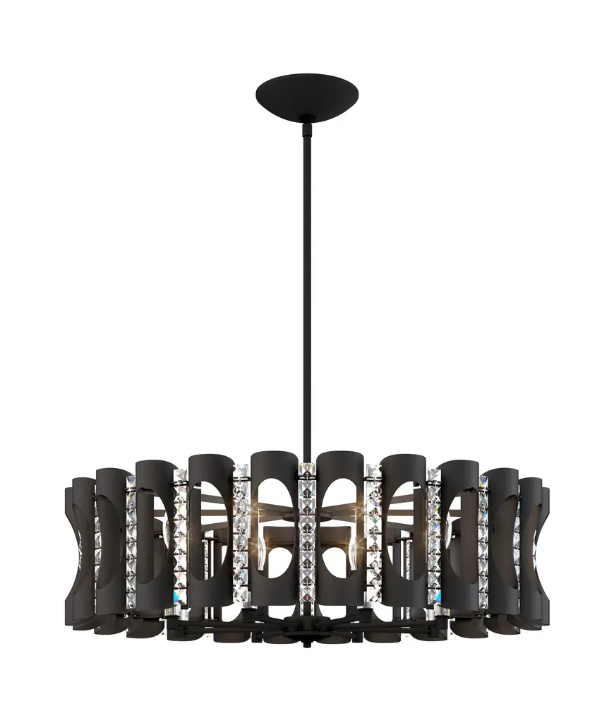 Twilight 8 light contemporary pendant in black with clear heritage crystalStyle: ContemporaryPower: HardwireRating: UL DryLamping: 8x 60W Incandescent E12Bulb(s) not included.Finish: BlackCrystal: in Clear Heritage Crystal