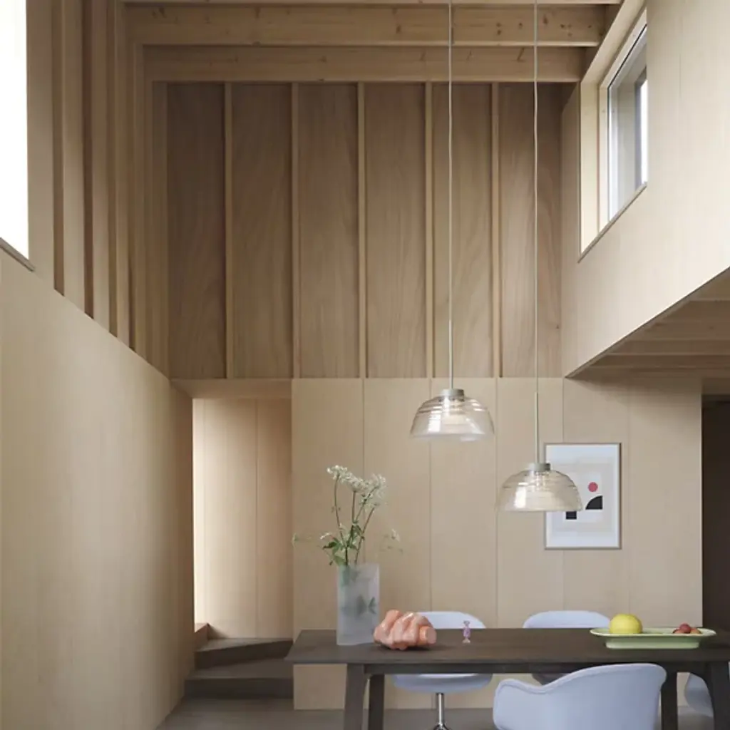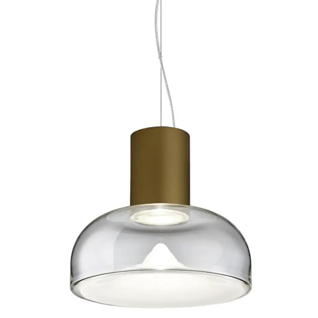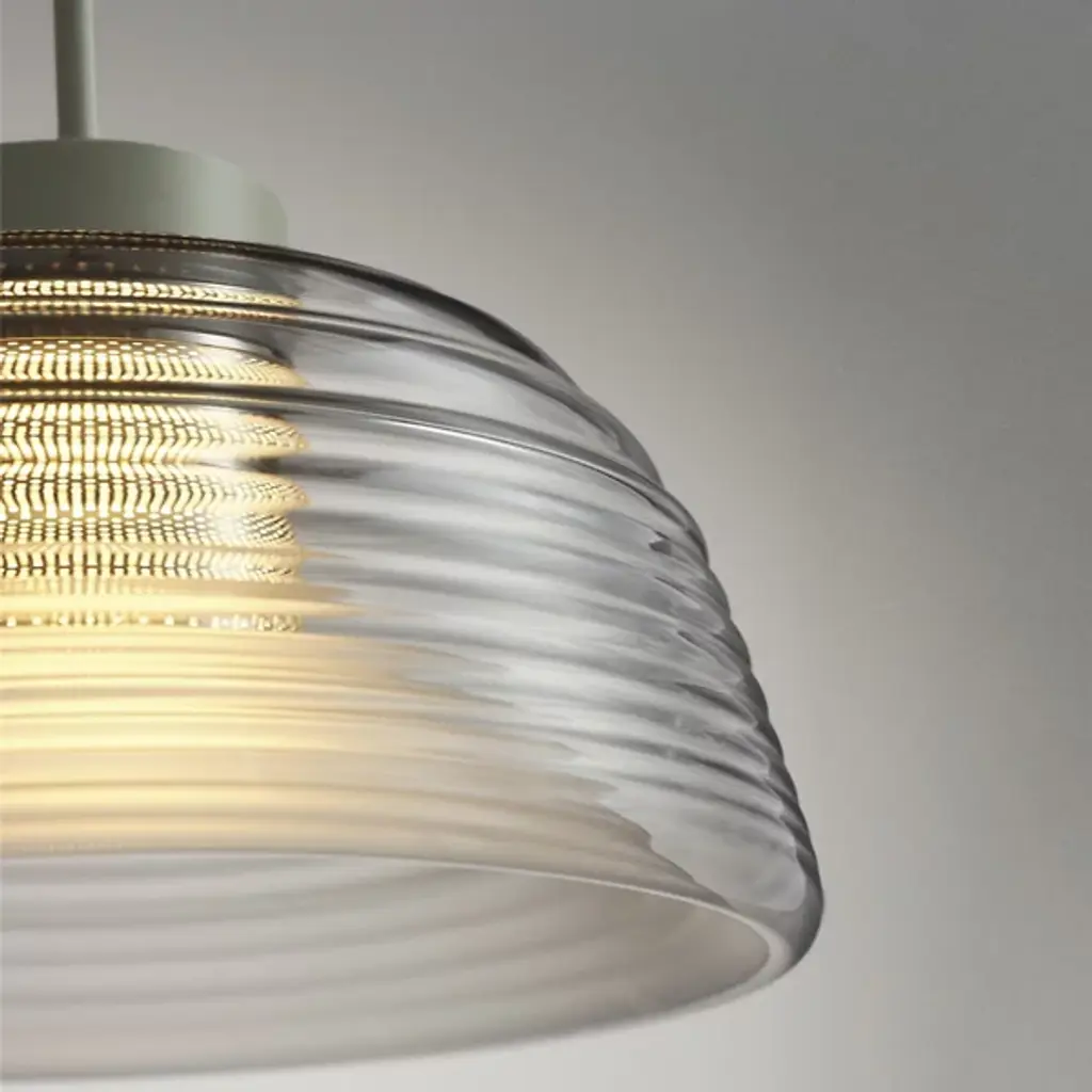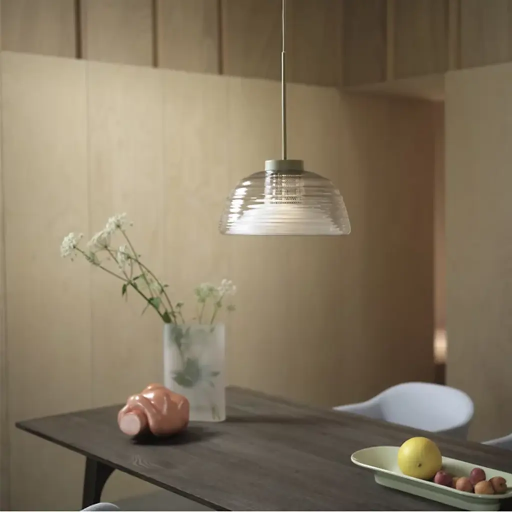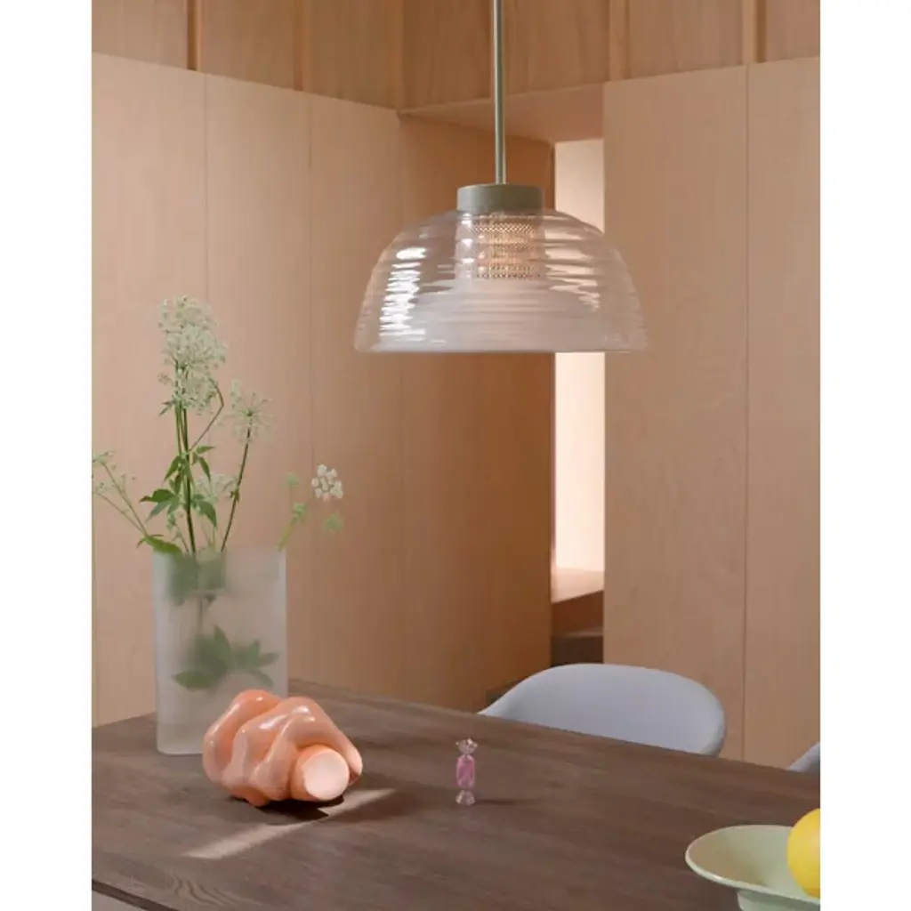 The Two Layer Pendant from Muuto reimagines the classic glass pendant with a dynamic interplay of texture and light. The shades are mouth-blown rippled glass designed by Thomas Bentzen, combining clear and frosted finishes with a hole-punched steel mesh near the lamp, creating a unique visual effect from every angle. The contrast between glossy and matte textures creates additional intrigue, while the layers of its namesake form a sculptural silhouette that emits a soft, glare-free glow. Ideal for dining areas or countertops, this pendant blends artistry with function for something unique.
