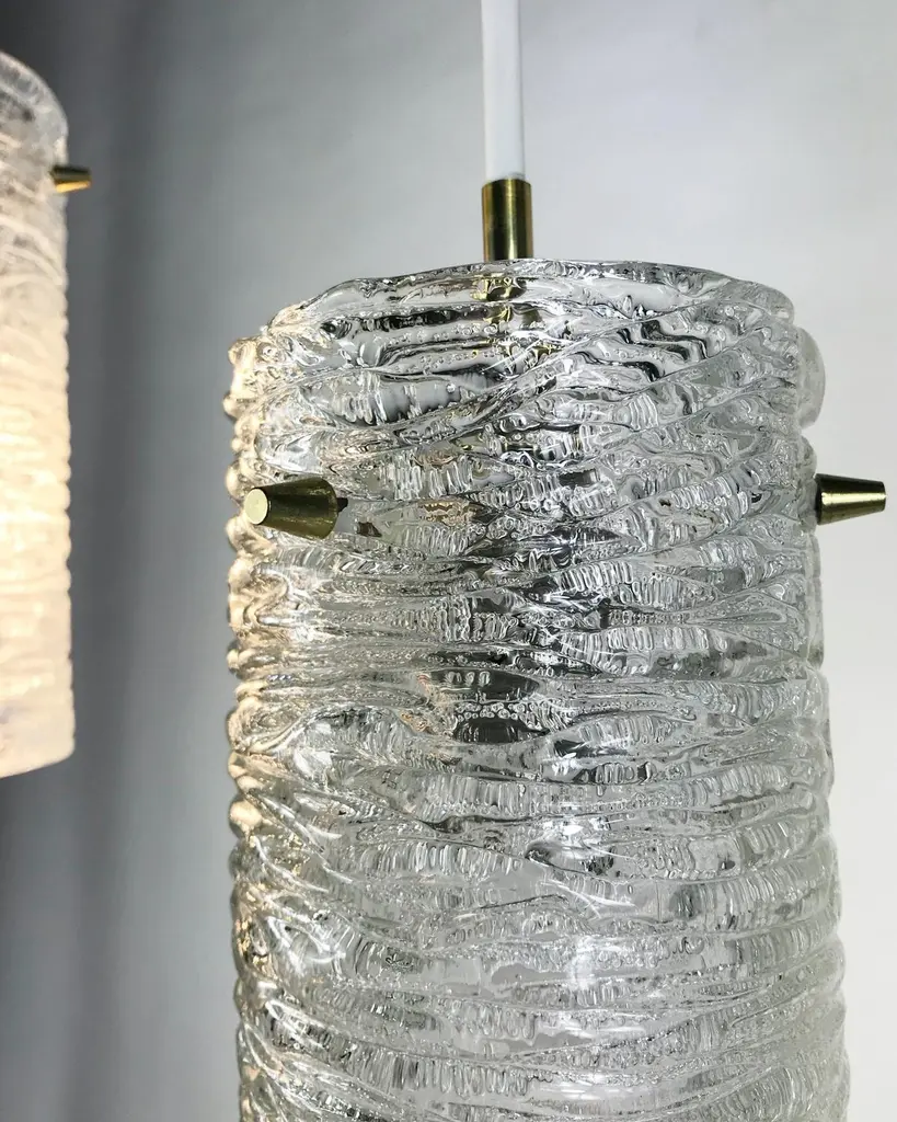 Two Midcentury J.t. Kalmar Brass & Textured Glass Pendant Lights, 1960s, Austria