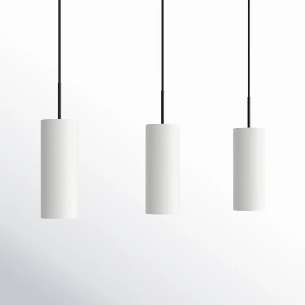 A crisp, clean look for modern interiors. The Tyke Linear Multi-Light Pendant by AFX Lighting has multiple cylindrical Steel shades hanging in a row along a shared rectangular canopy. Each shade provides a bright and broad beam of downlight, making this linear pendant the ideal choice for illuminating a modern kitchen island/peninsula or dining table. You can also hang each pendant at your desired length, whether that’s all in an even row or staggered.