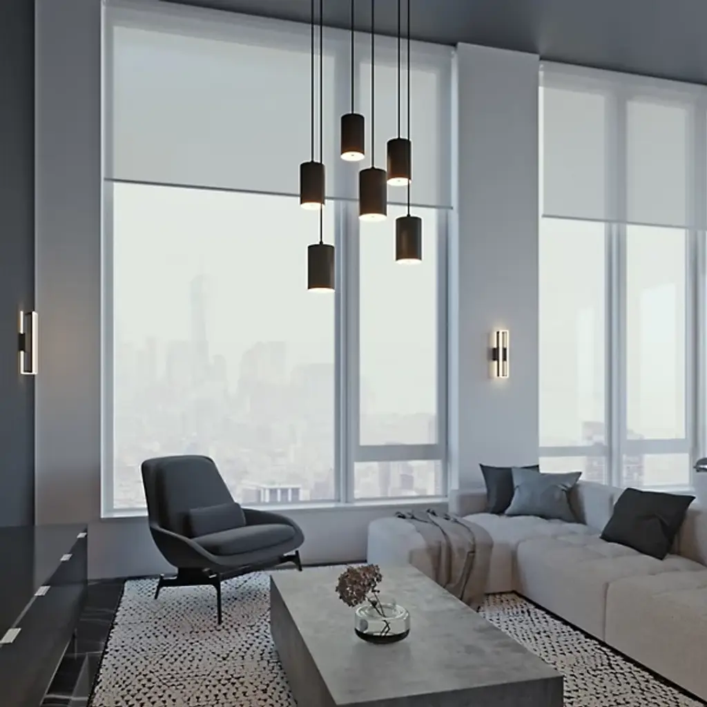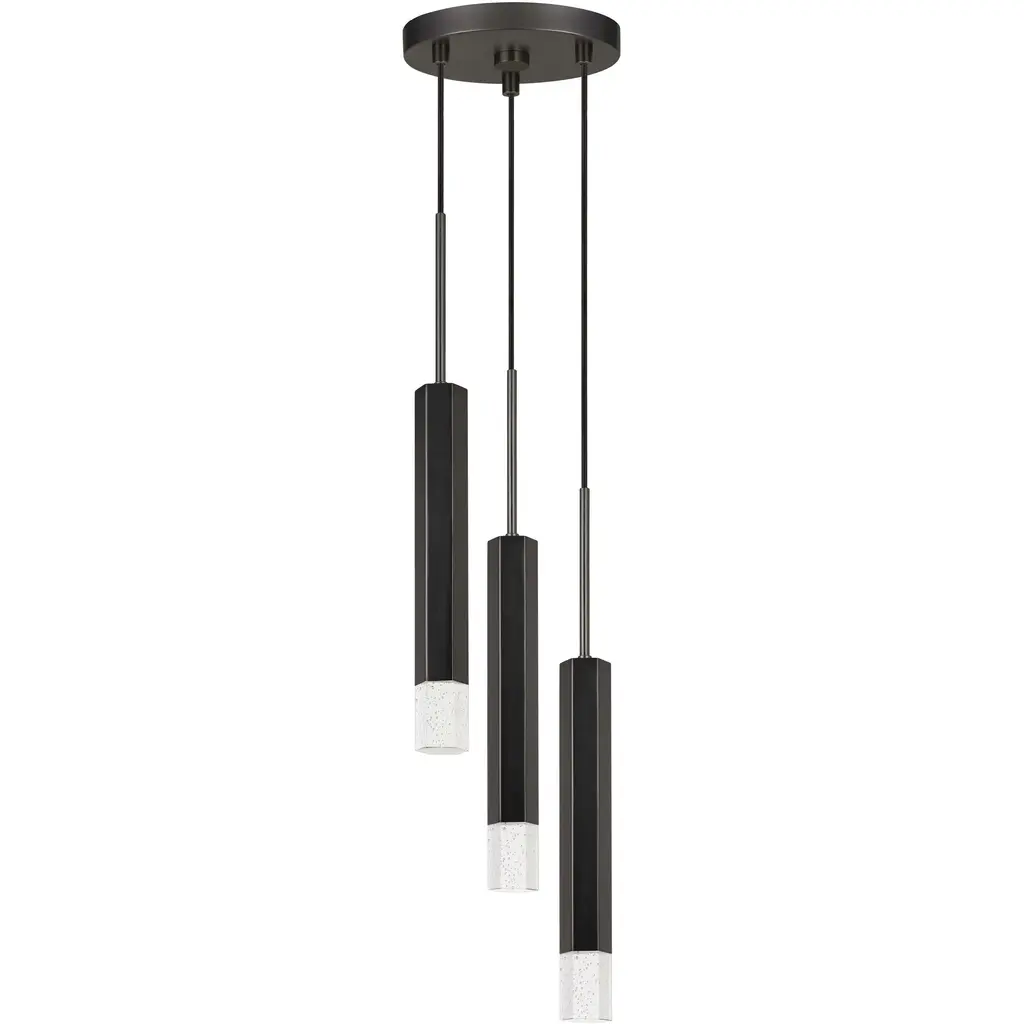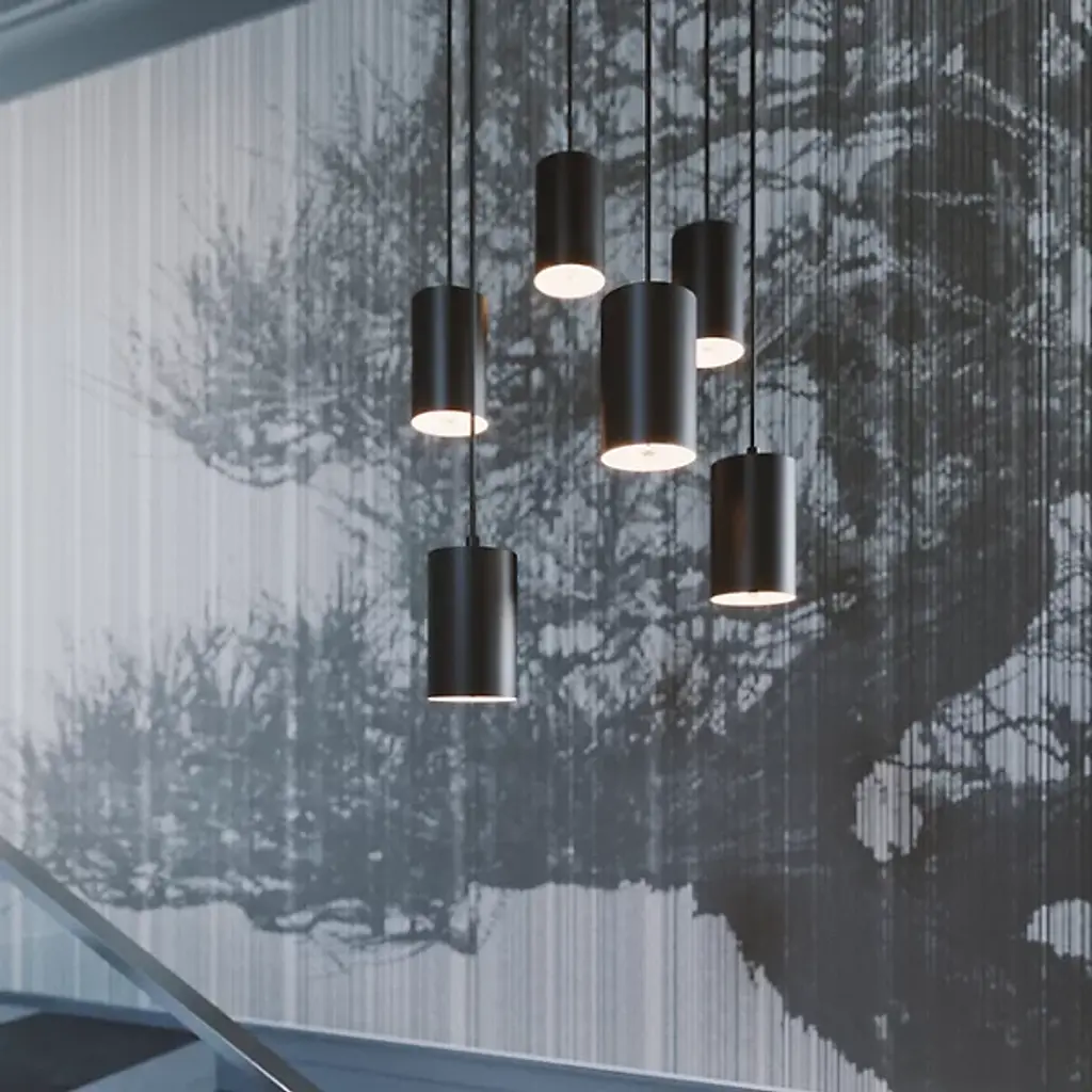 A clean, contemporary cluster of light for modern spaces. The Tyke Round Multi-Light Pendant by AFX Lighting features a group of cylindrical Steel shades hanging from a shared round canopy. Each shade produces a broad and bright wash of downlight. And the hanging length of each shade is independently adjustable, so you can create the custom visual impression you want. Use this multi-light pendant over a round dining table or in a tall entryway.