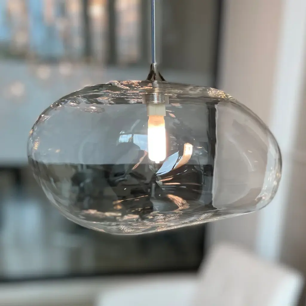 This single-light pendant has the standout appeal of an art-studio find with its sculptural shade. It's crafted from glass in a free-flowing shape, offering a soft glow from one 40W bulb (sold separately). We love that this hard-wired fixture hangs from an adjustable cord, letting you choose the right height for your space. Style this pendant solo, or pair it with another for a curated look over your kitchen island.