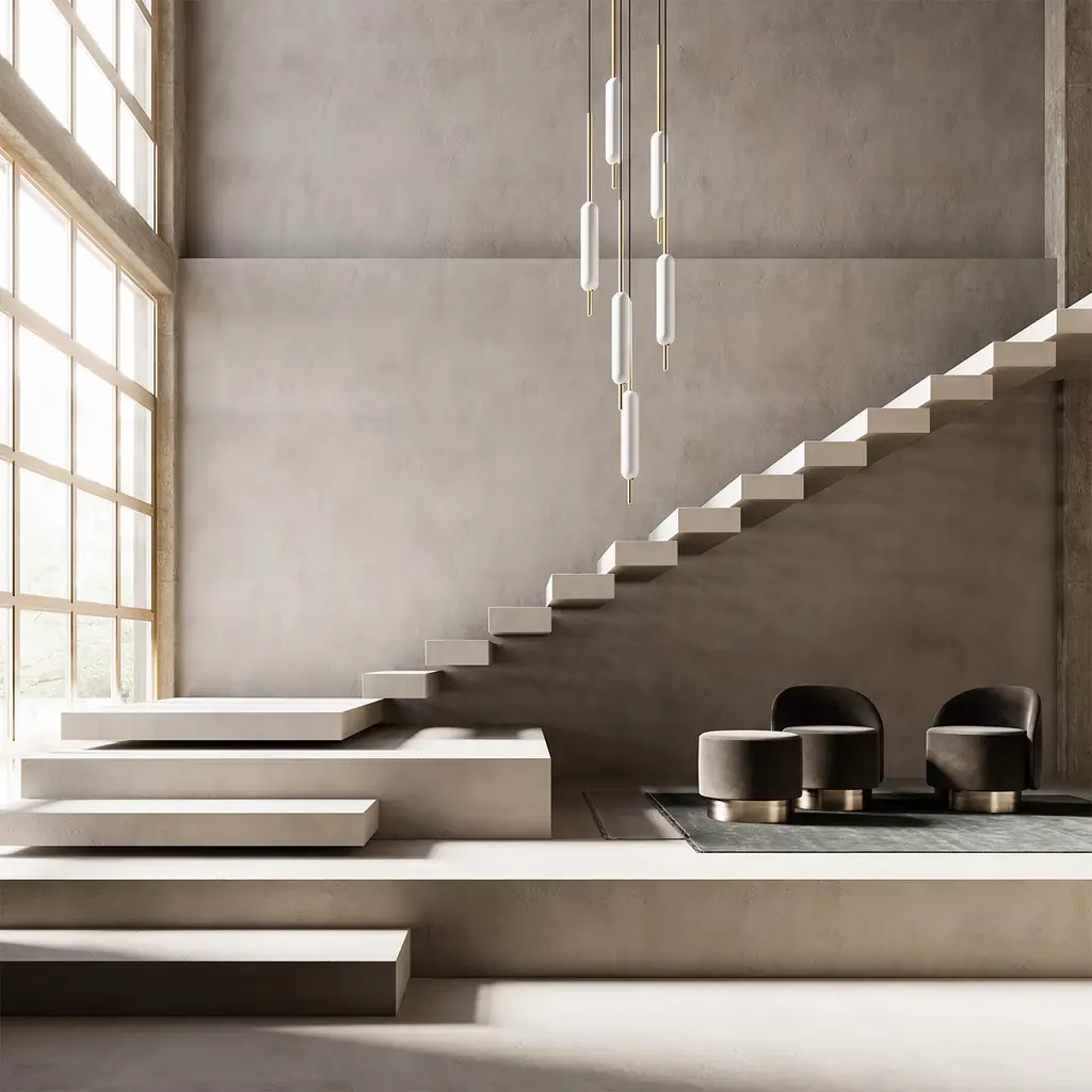 The shape of the light module is inspired by the Typha Latifolia, the botanical name of this beautiful spiky water plant. Each natural brass stem blooms in a LED light enclosed by tubular glass. Depending on the desired effect and the space to decorate, it is possible to choose from pendant lamps with one, three or six lights, wall lamp or floor lamp.
