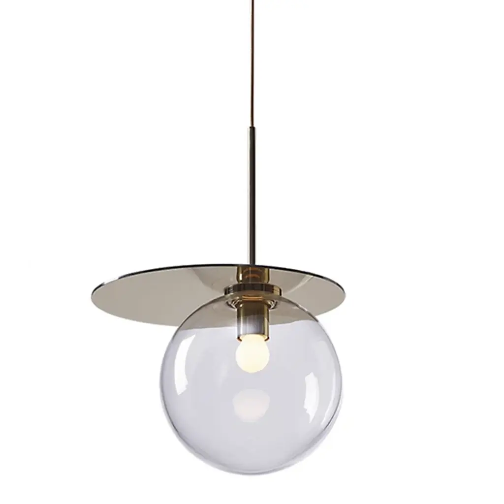 Give your living space a Bohemian sense of style with the Umbra Pendant. A prominent glass globe houses an LED, which brings vibrant light into your home. This fixture is crowned with a fine plate that draws your eye to the light’s stainless steel casing. Your pendant remains suspended in the air through attachment to a canopy at your ceiling. This intricately crafted work of art is the creation of the artistic team from Prague, known as Studio Dechem. Led by Michaela Tomiskova and Jakub Jandourek, these artists have decades of experience in the field of glasswork, which heightens their penchant for design.
