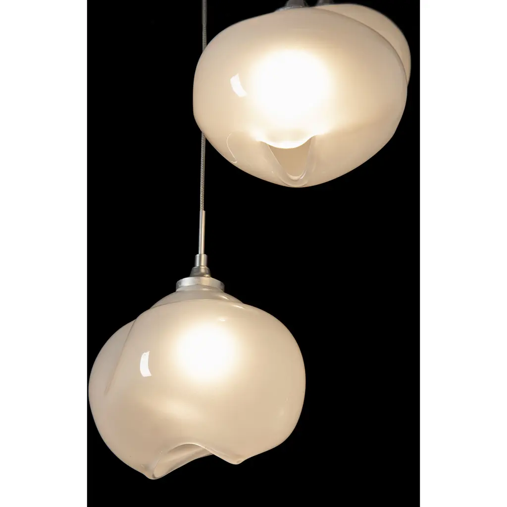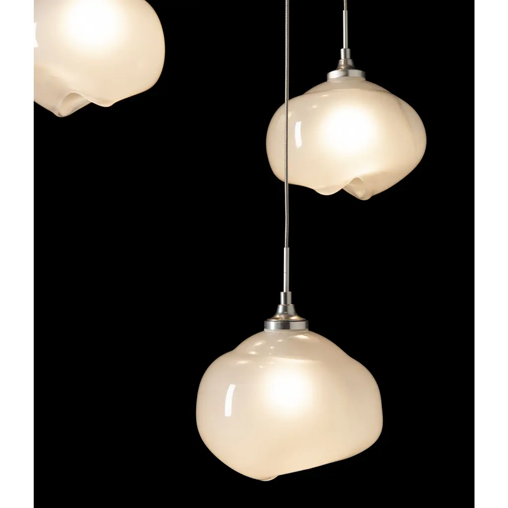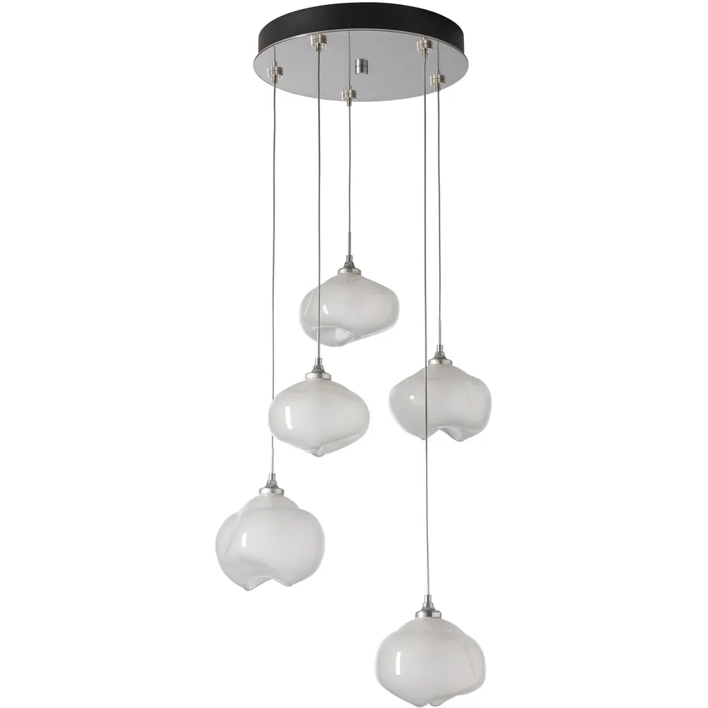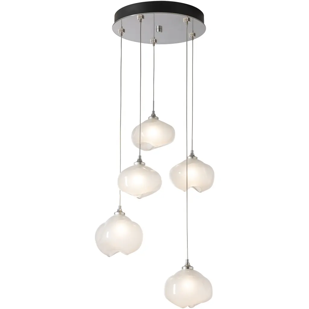 The Ume 5-Light is a multi-port fixture features the unique Ume frosted glass shades resembling the Japanese plum blossoms for which this collection is named. With the ability to customize the lengths of each cable, this versatile Ume fixture can serve as a semi-flush with shortened cables, or as a pendant with staggered individual lights.