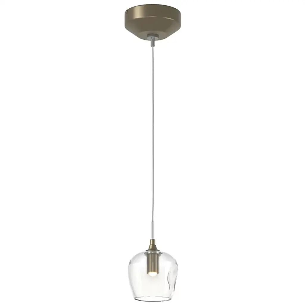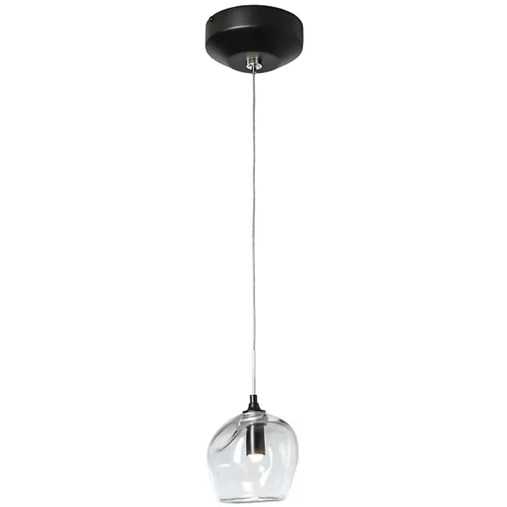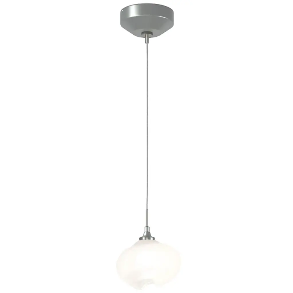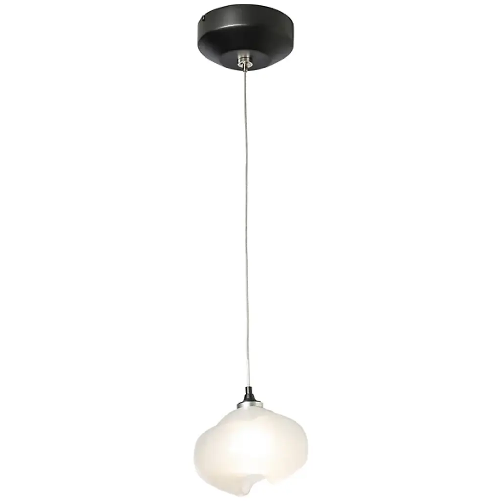 Change the look and feel of your most deserving of indoor spaces with the Ume Low Voltage Mini Pendant by Hubbardton Forge. Appearing purely organic in composition, a single glass globe suspends as a puff of frosted glass on the end of a low voltage cable that leads up to a beveled, rounded ceiling mount. Hang this mini pendant light fixture above your kitchen island or dining table to add an artistic touch to your home’s interior design. The Ume design also includes glass variations in a thumbprint shape.