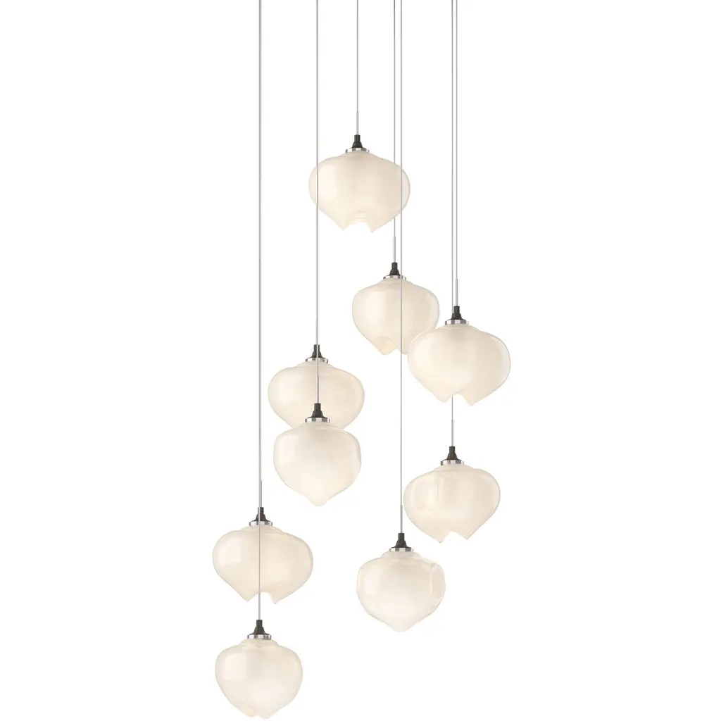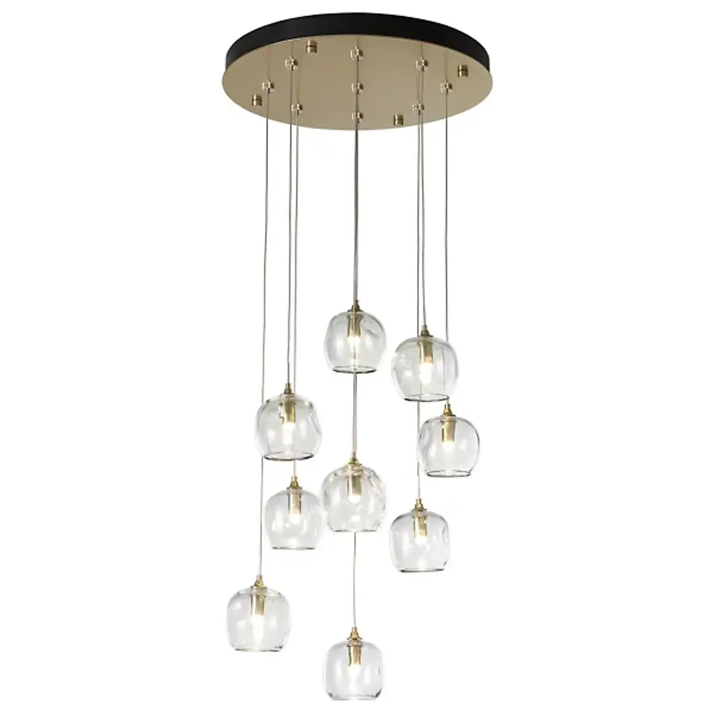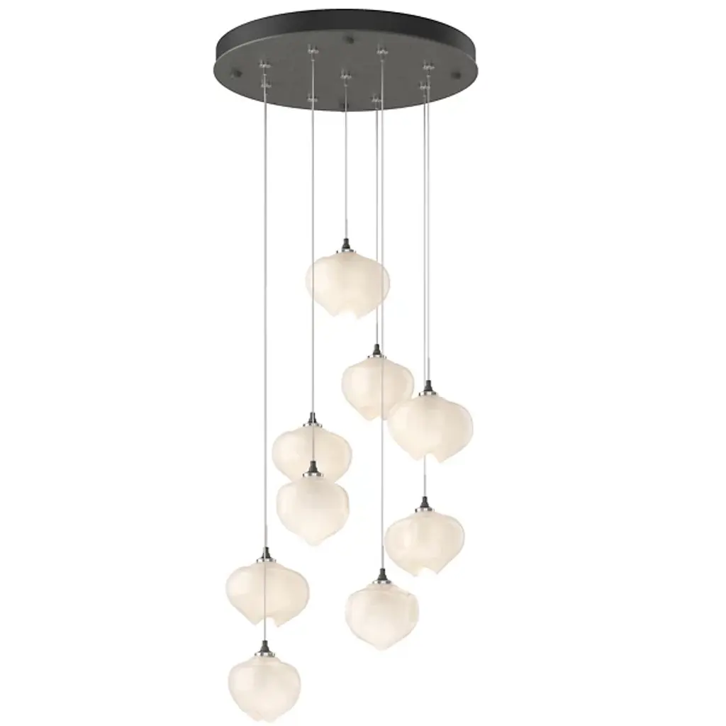 Delectable modern lighting design. Named after the often dried or pickled Japanese plum, the Ume Round Multi-Light Pendant by Hubbardton Forge pays further tribute with its distinctive glass shades. The glass is blown to have a soft, organic look, much like its namesake fruit. Several of these supple-looking pendants share a single round canopy and, with field-cuttable support wires, are easily configured to create the one-of-the-kind cluster you want over a dining table or tall entryway.