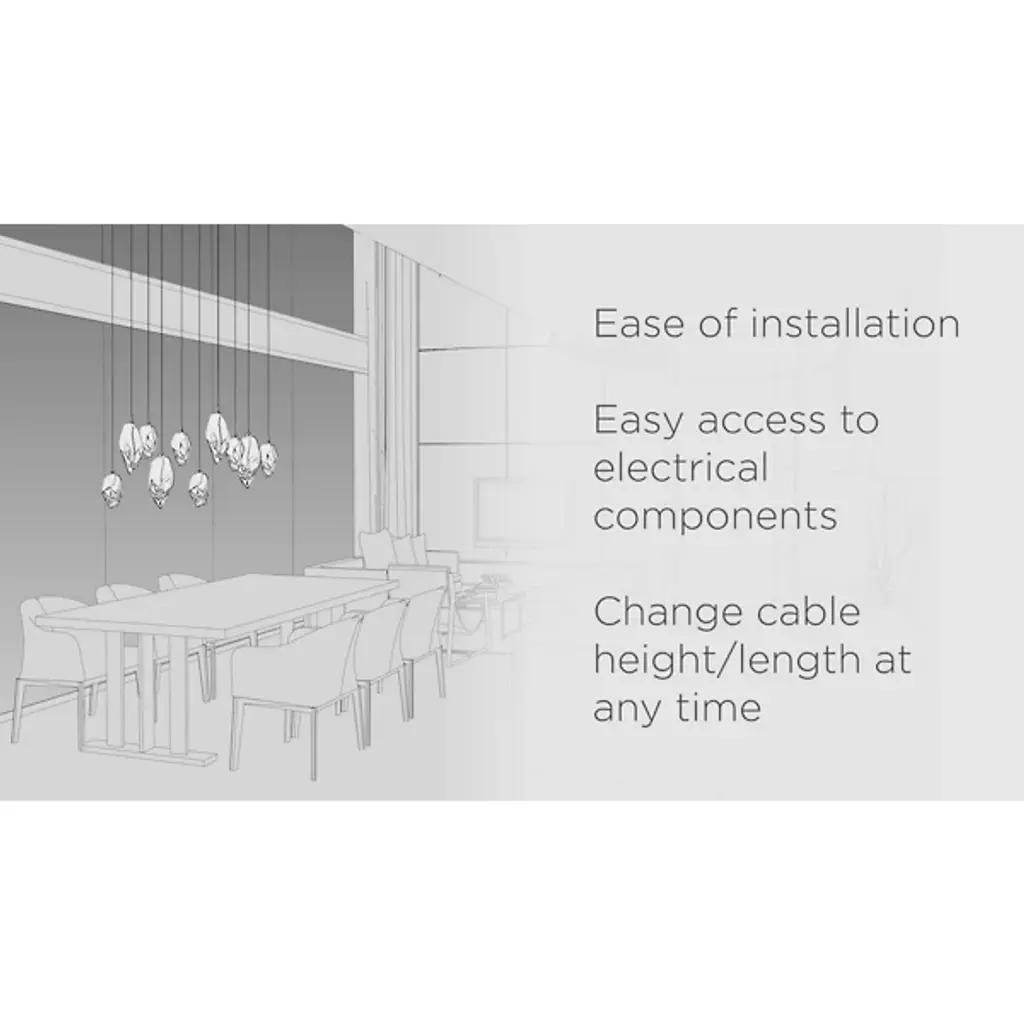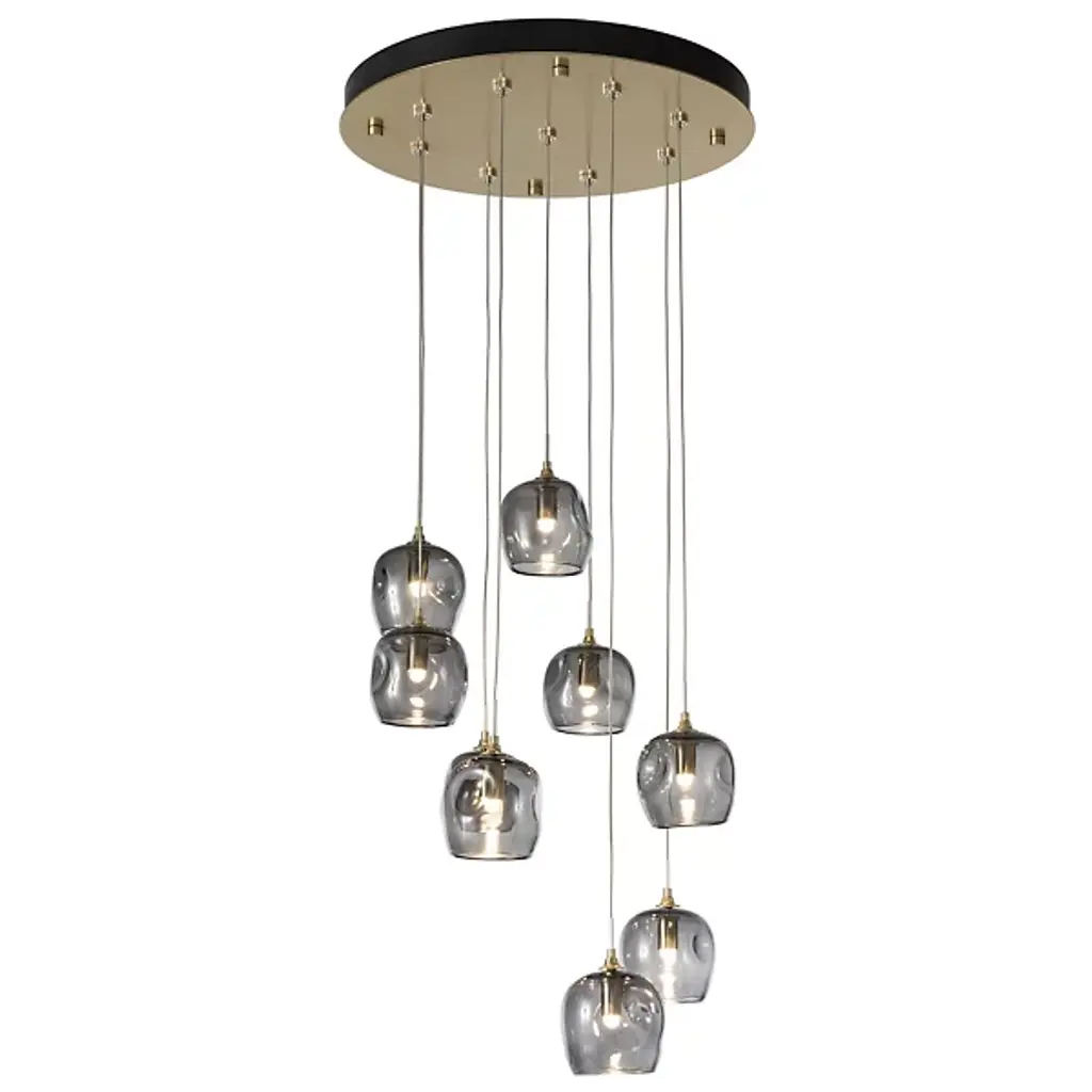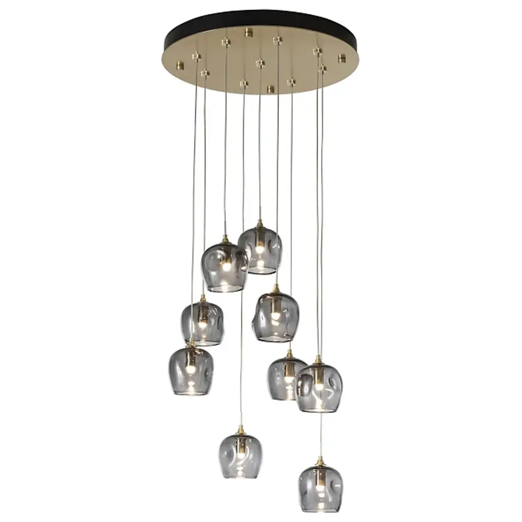 Delectable modern lighting design. Named after the often dried or pickled Japanese plum, the Ume Round Multi-Light Pendant by Hubbardton Forge pays further tribute with its distinctive glass shades. The glass is blown to have a soft, organic look, much like its namesake fruit. Several of these supple-looking pendants share a single round canopy and, with field-cuttable support wires, are easily configured to create the one-of-the-kind cluster you want over a dining table or tall entryway.