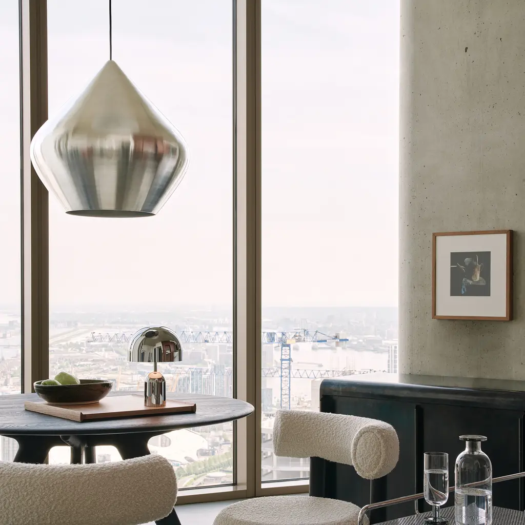 Bold yet refined, the UNBEATEN LED Stout Pendant by Tom Dixon is the ultimate statement piece from the Unbeaten Collection. Crafted with hand-spun and hand-brushed aluminum, its sculptural, teardrop-inspired silhouette showcases the raw beauty of the material. Designed for both function and aesthetics, this pendant offers improved illumination, thicker metal construction, and elevated craftsmanship. Perfect for larger spaces, the Stout Pendant blends seamlessly into various interiors while drawing attention with its commanding form. Created by skilled artisans in Moradabad, India, and adhering to ISO-certified quality and environmental standards, this piece reflects Tom Dixon’s dedication to exceptional design and sustainable practices. With a 3-year warranty and versatile design, the UNBEATEN LED Stout Pendant is a striking addition to any home or commercial setting.