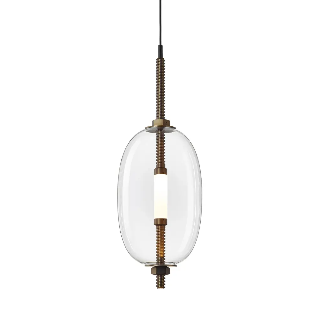 Playful in concept yet refined in execution, the Under Pressure LED Pendant Light from Brokis explores the unexpected beauty of tension and transformation. Designed by Lucie Koldova, this imaginative piece resembles a balloon captured in the moment before it bursts—its mouthblown glass form subtly compressed and cinched by a sleek metal band. The integrated LED source glows from within, creating a soft, atmospheric light that feels both whimsical and sophisticated. Suspended solo or in a cluster, Under Pressure brings a sense of movement, curiosity, and sculptural intrigue to contemporary spaces. Highlights