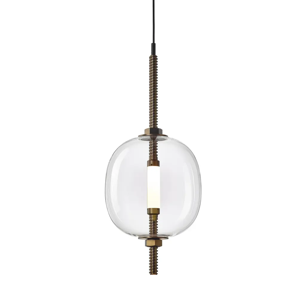 Playful in concept yet refined in execution, the Under Pressure LED Pendant Light from Brokis explores the unexpected beauty of tension and transformation. Designed by Lucie Koldova, this imaginative piece resembles a balloon captured in the moment before it bursts—its mouthblown glass form subtly compressed and cinched by a sleek metal band. The integrated LED source glows from within, creating a soft, atmospheric light that feels both whimsical and sophisticated. Suspended solo or in a cluster, Under Pressure brings a sense of movement, curiosity, and sculptural intrigue to contemporary spaces. Highlights