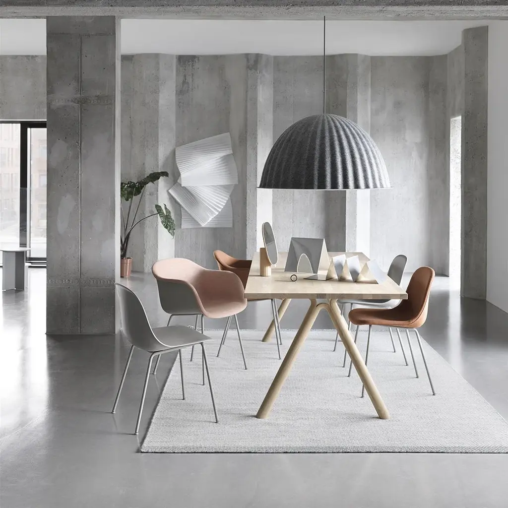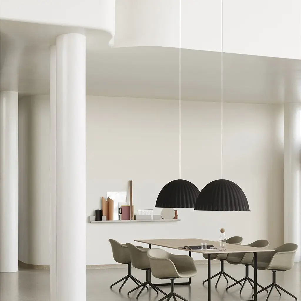 The UNDER THE BELL PENDANT LAMP is made from recycled plastic felt, this eye-catching lamp gives the effect of a cosy space within a space. Whether hung over a dining table or in an office or lobby, it also absorbs noise and helps improve the room acoustics.