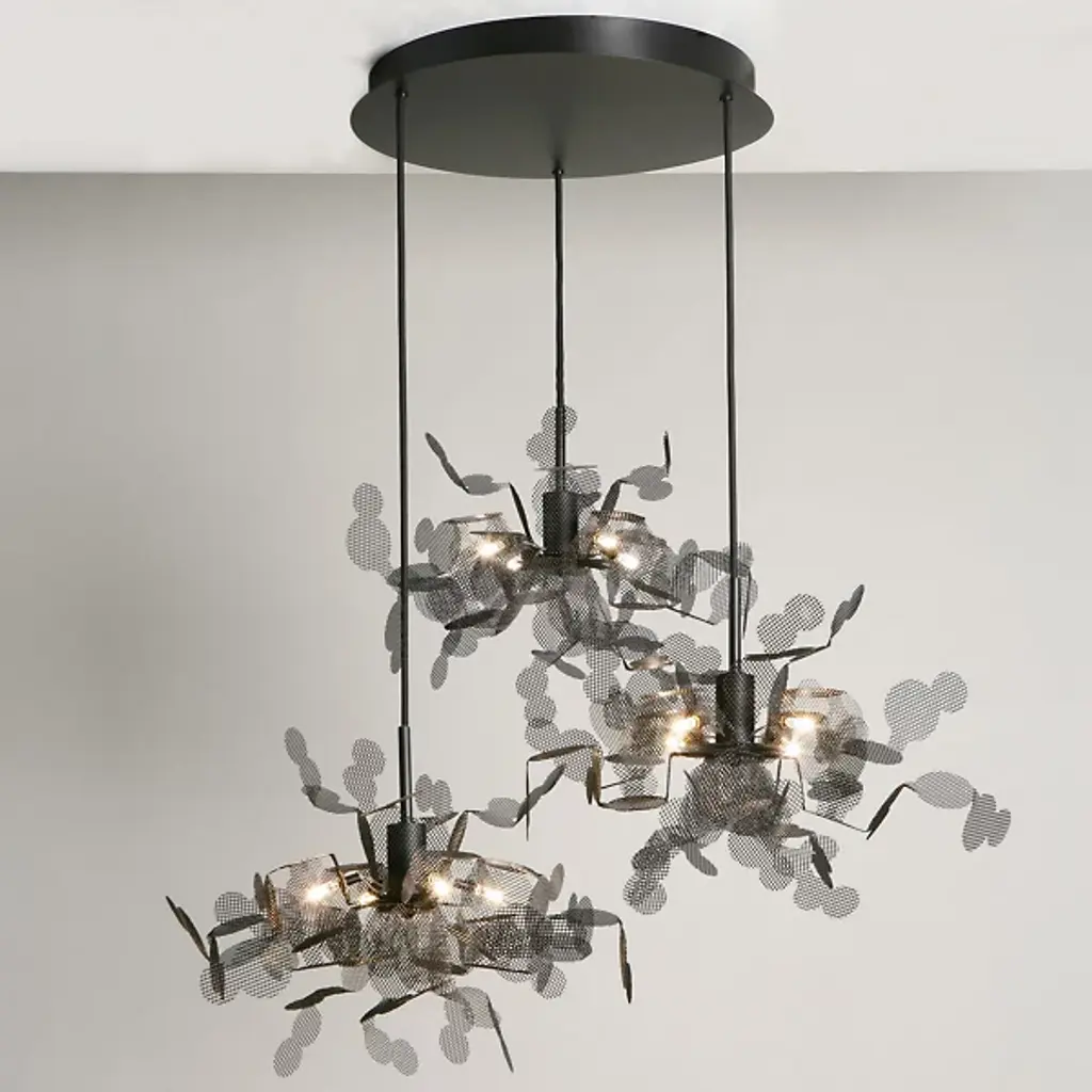 Calling to mind a lively cityscape, photographed unfocused to achieve a wondrous background of colorful shapes. The unfocused Multi-Light Pendant from MYO translates photography’s bokeh effect as a functional sculpture overflowing with excitement. Creator Juan Orts’ pieces balance imagination with emotion. Orts sets the awe-inspiring tone with a fine cord suspension for a gravity-defying display. Steel mesh round shapes take on a life of their own as they explode visually from the light sources. The shapes present vibrant and subdued colors like those seen in the background of a photographic print. These distinctive shapes let out an arresting atmosphere.