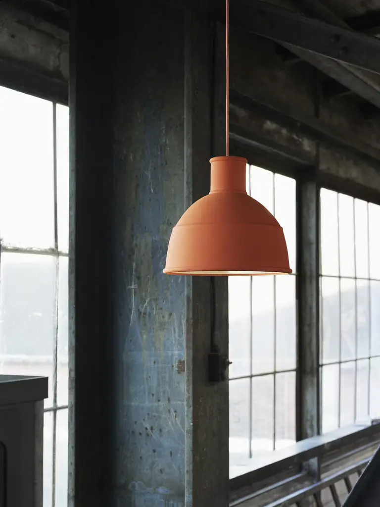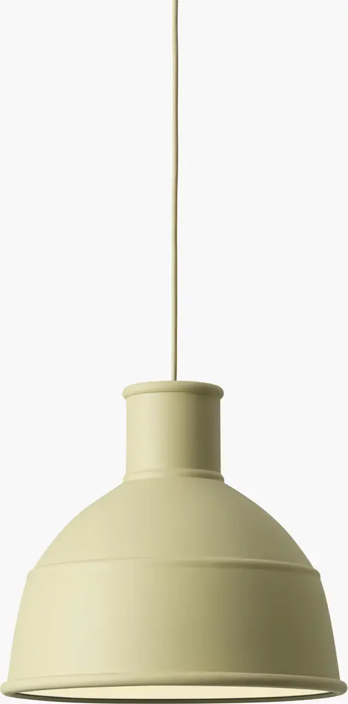 A quirky take on the traditional pendant, the Unfold Pendant (2010) is a new interpretation of a classic industrial design. Named for how it folds and unfolds with a simple push on its top, it's constructed of silicone for a soft look and feel. Emits soft diffused light. Bulb (not included): E26 base, 100W max. UL Listed. Made in China.