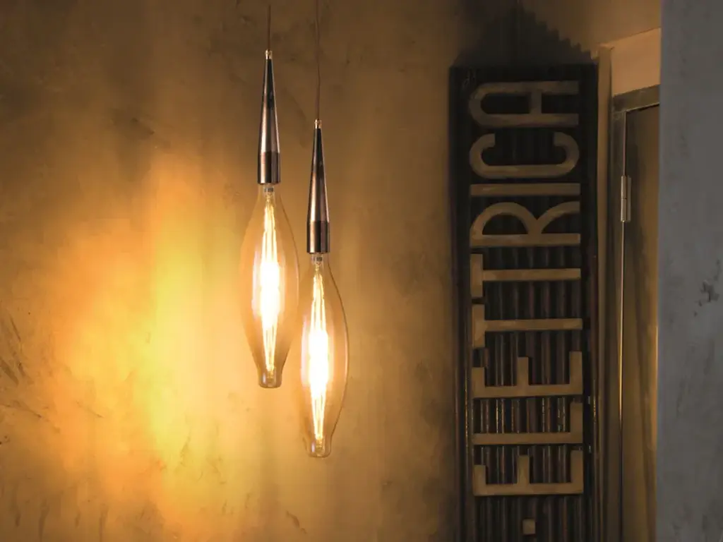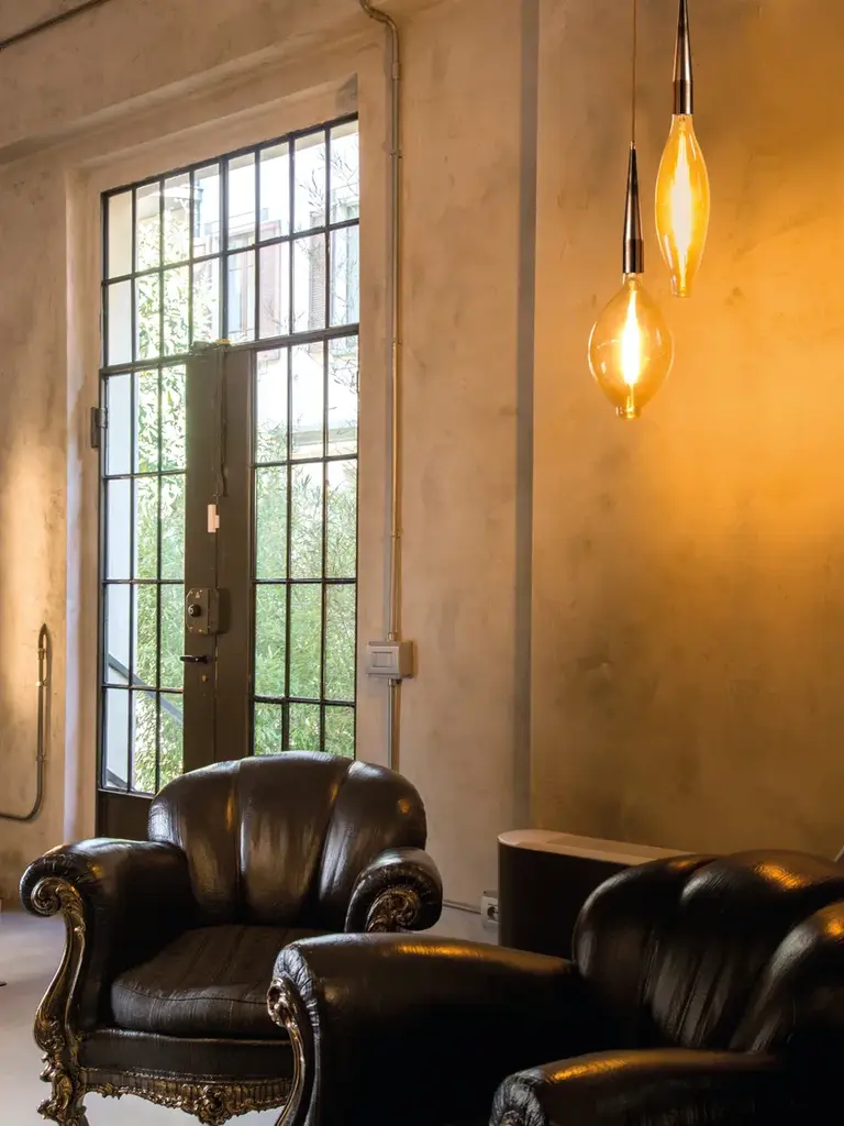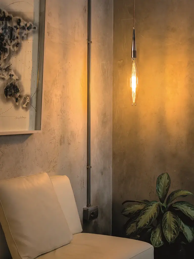 Lighting solutions using blown glass filament LED bulbs as a decorative element. Dimmable light bulbs are available in two powers, 5W and 11W, and are characterized by different shapes, colors and sizes. The smoky or retrò effect provides to UNIDEA a surplus of evocative and emotional elegance that makes a luminous project unique. The compositions are completed with different accessories the customization of the system.
