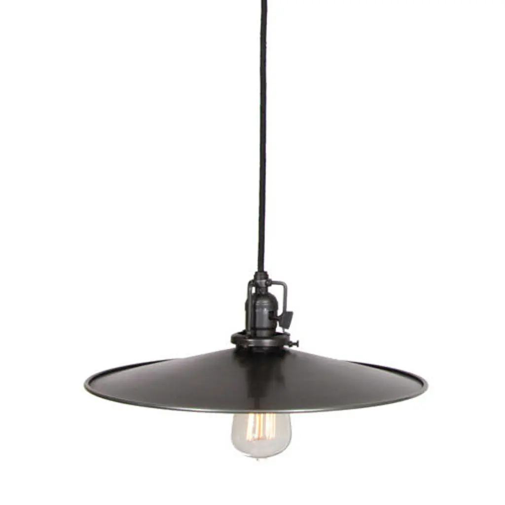 One light Union Square pendant pewter finish 14" Wide metal shade, inside finish nickel