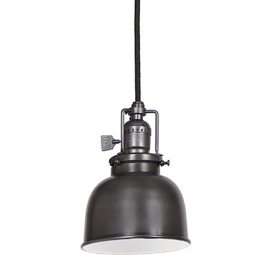 One light Union Square pendant oil rubbed bronze finish 5" Wide metal shade, inside finish white