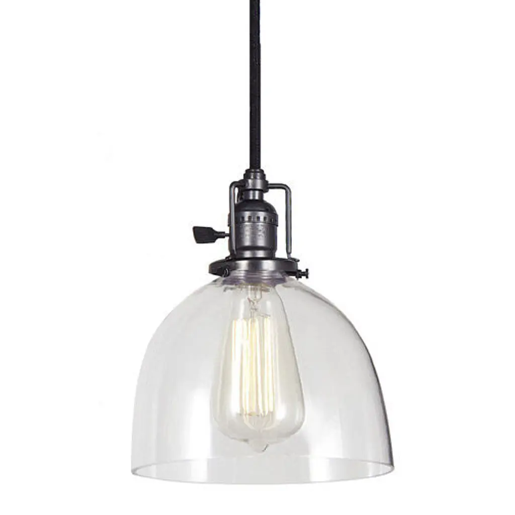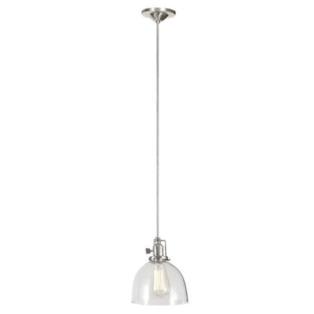 One light Union Square pendant pewter finish 7" Wide, clear mouth blown glass shade