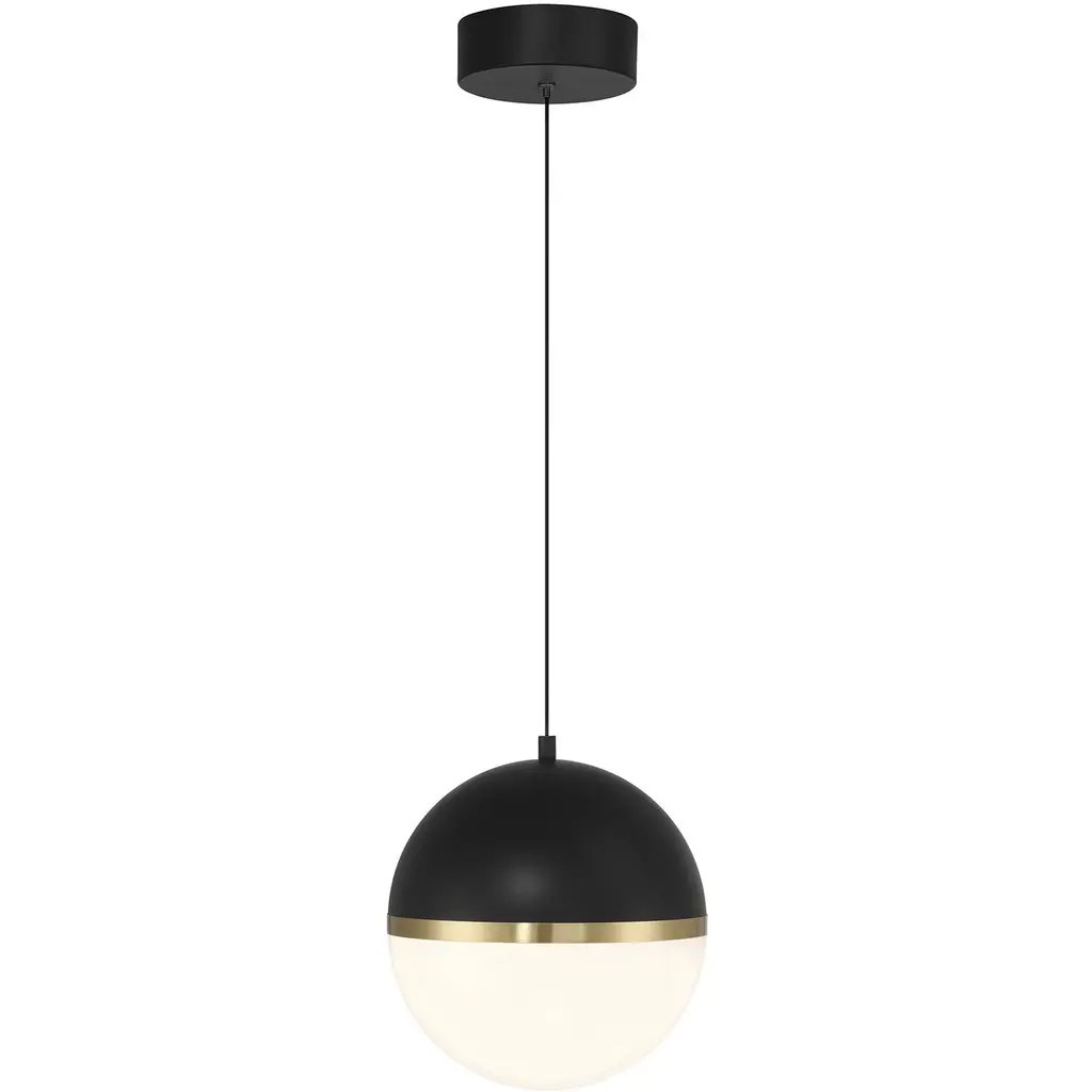 Unity Led 10 Inch Black And Antique Brushed Brass And Opal Pendant Ceiling Light