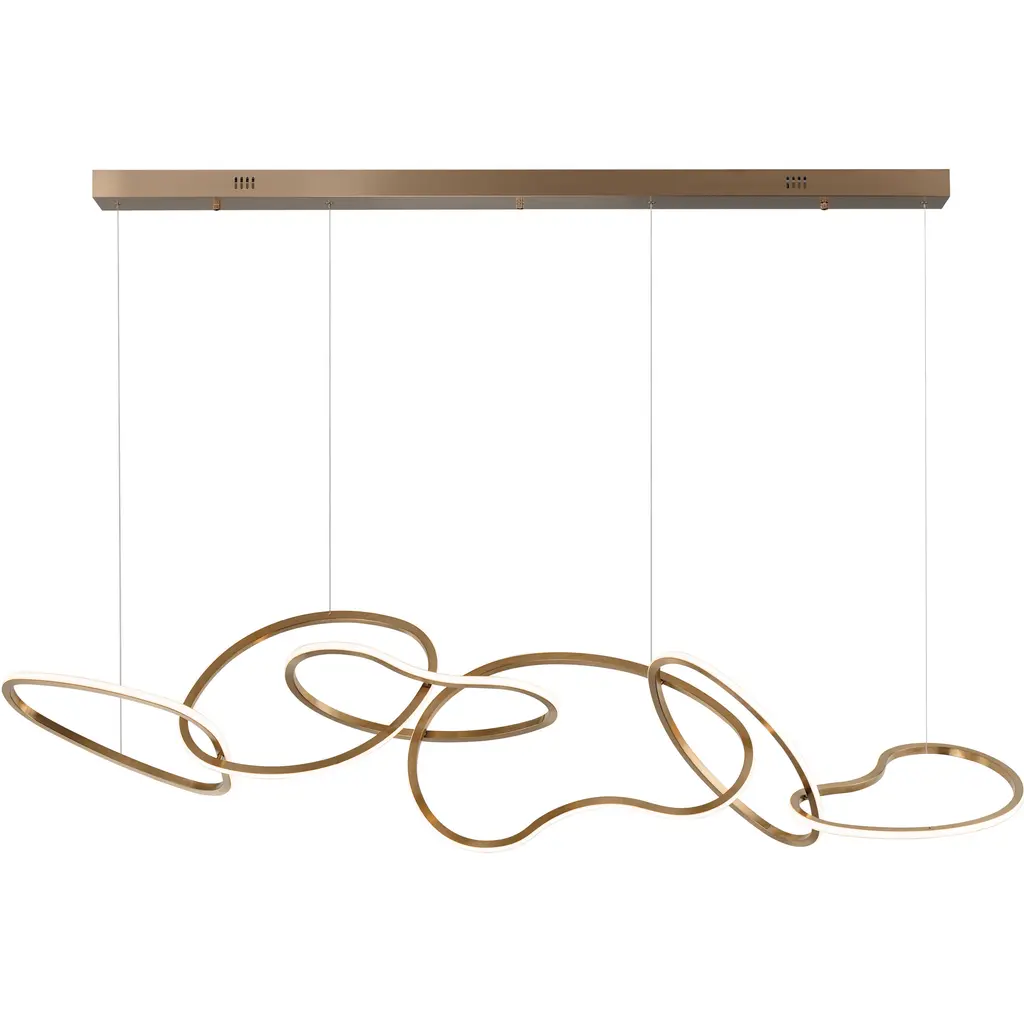 Abstract shapes of stainless steel are finished in Brushed Champagne or Black Chrome and intersect to create an intriguing sculpture of light. Unity provides both art and illumination for those searching for a unique lighting piece.