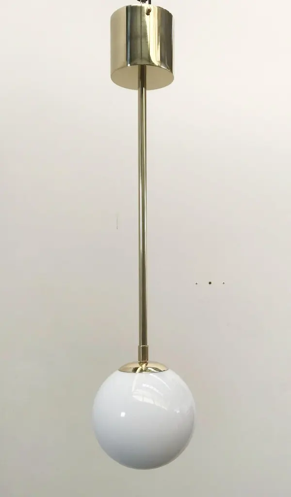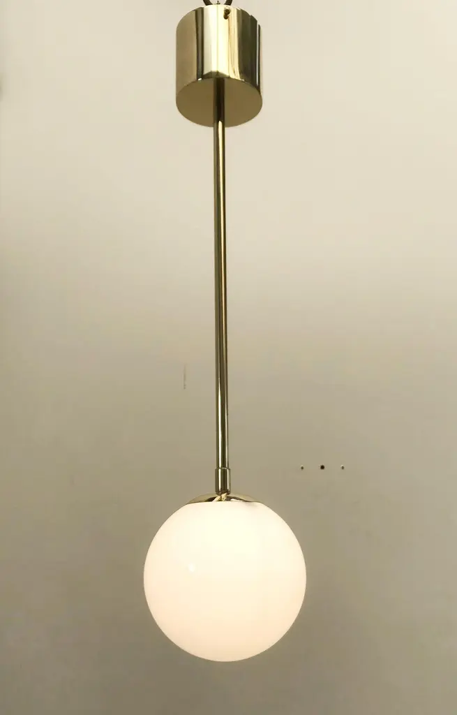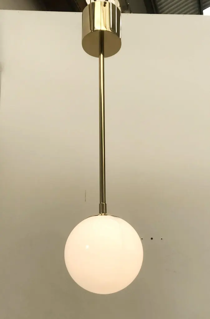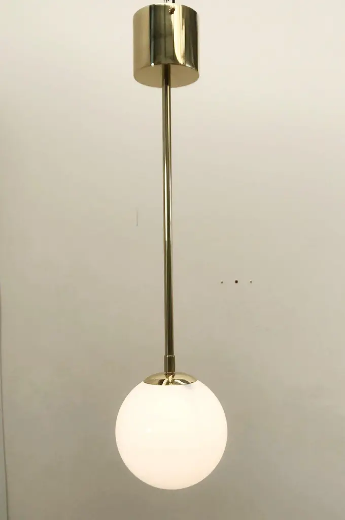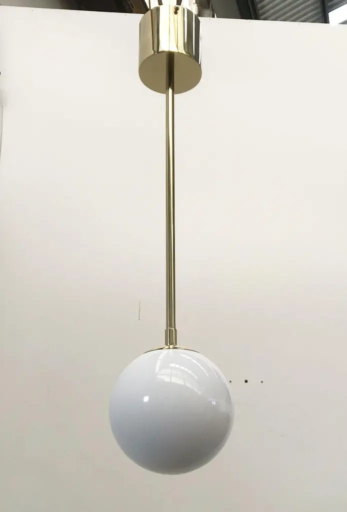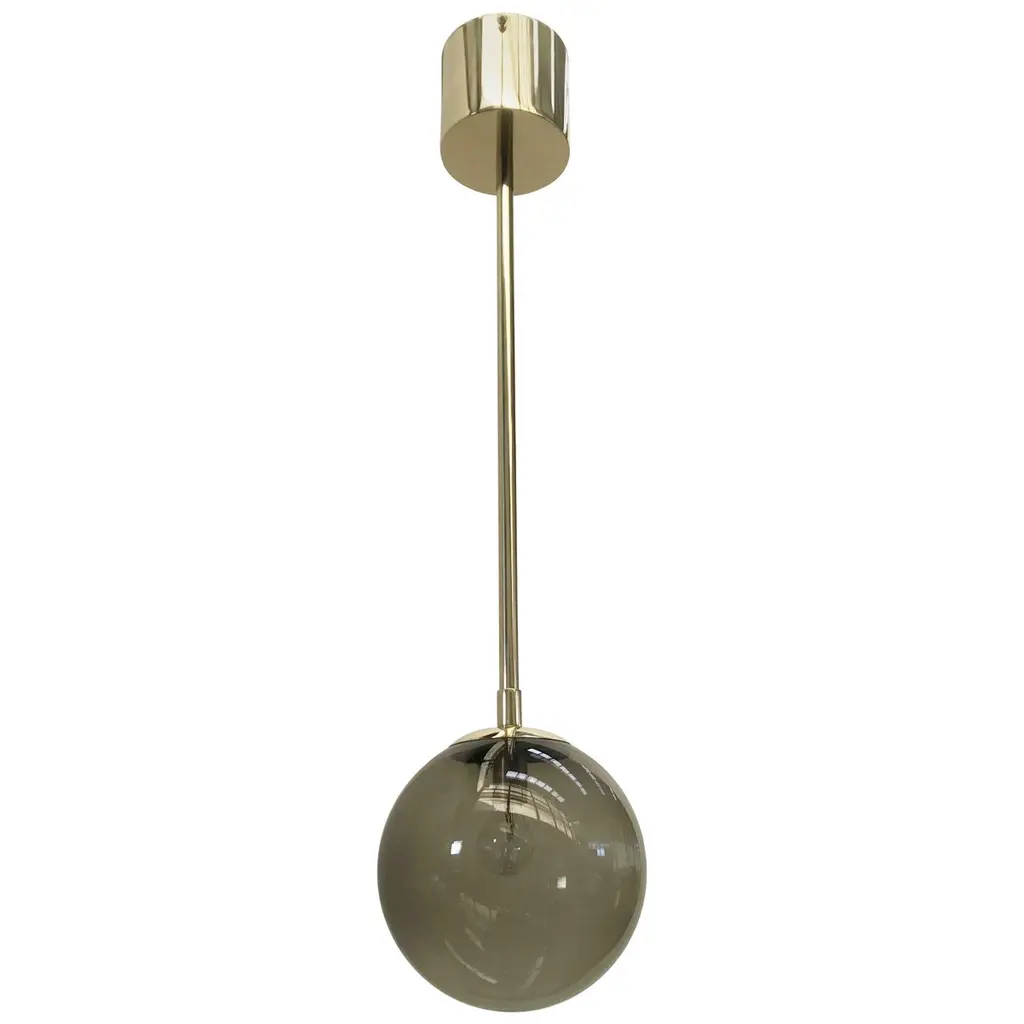Italian pendant with Murano glass globe mounted on brass frame / Made in ItalyDesigned by Fabio Ltd, inspired by Angelo Lelli and Arredoluce styles1 light / E12 or E14 type / max 40W eachHeight: 29.5 inches / Diameter: 8 inchesOrder Only / This item ships from ItalyOrder Reference: FABIOLTD UNO GLOBE PENDANTThe listed price applies to all Brass finishes : Unlacquered Natural Brass, Unlacquered Polished Brass, Lacquered Polished Brass, Lacquered Satin BrassOther finishes available with upcharge of $150 : Bronzed, Polished Chrome, Satin Chrome, Polished Nickel, Satin Nickel, Polished Black Nickel, Satin Black Nickel, Polished Copper, Satin Copper