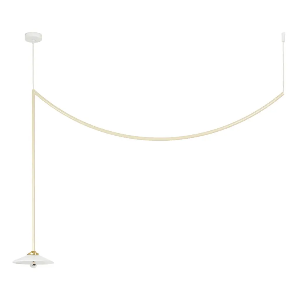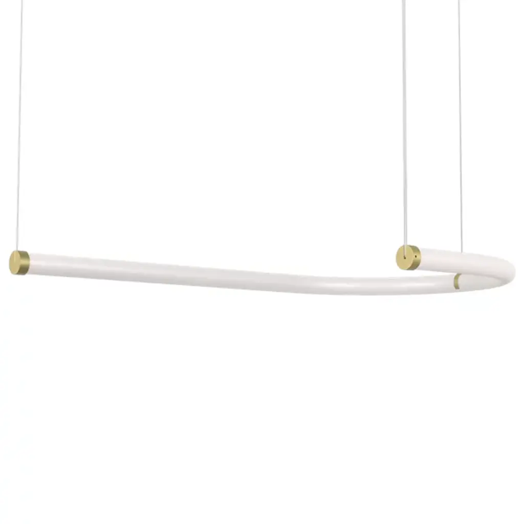 The Unseen J LED Pendant from Petite Friture is designed by Studio Pepe. Crafted with precision using high-quality materials, including brass and steel, this pendant showcases a marriage of elegance and innovation. The distinctive shade, composed of durable polycarbonate, adds a touch of sophistication, taking on a J shape. Illuminate your surroundings with the integrated LED that boasts dimmable capabilities when paired with a separately sold ELV dimmer. Unseen is sloped-ceiling adaptable.