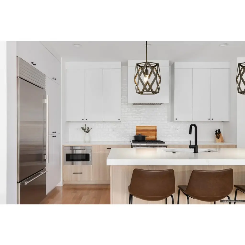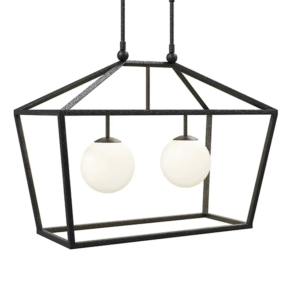 The Mohall Collection of light fixtures is a perfect blend of modern design and architectural texture. The collection features a ceiling light and two variations of pendant lights, contemporary fixtures characterized by a bold geometric design and open structure. The fixtures’ framework consists of a series of metal bars arranged in a crisscross pattern, forming a three-dimensional, multifaceted geometric shape. The bars intersect at various points, creating a network of triangles and polygons. The metal bars are sturdy and have a smooth finish, available in architectural bronze and matte black. The Mohall geometric light fixtures feature a sleek, modern design with a minimalist aesthetic. The pendant light, for instance, features an open, geometric framework composed of intersecting metal bars. The design creates a visually interesting structure giving the fixture an overall shape of a tapered polyhedron, wider at the midsection and narrowing towards the bottom and top to resemble a barrel cage. Another variation of the Mohall pendant light features an open, geometric framework with intersecting metal bars forming a distinctive polyhedral shape. The framework is characterized by a series of intersecting lines forming triangles and polygons, creating a multifaceted, cage-like structure. The pendant light accommodates multiple exposed bulbs, which are centrally mounted within the geometric frame. The Mohall Collection is designed for secure mounting, with the framework attached to a central hub connected to the ceiling mount.