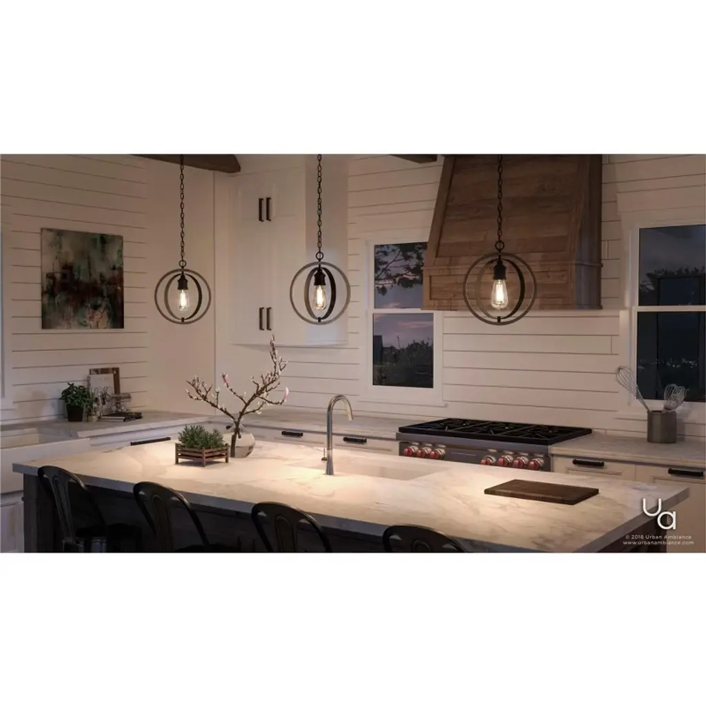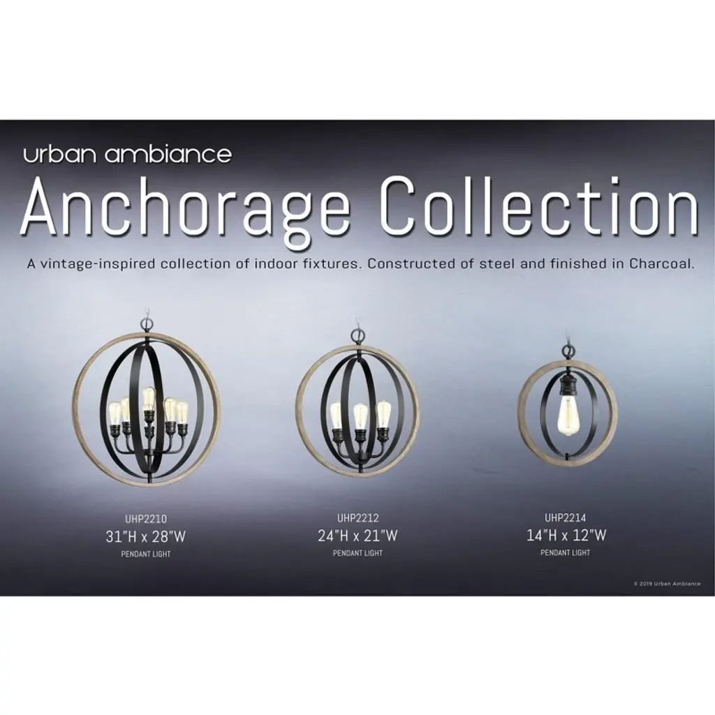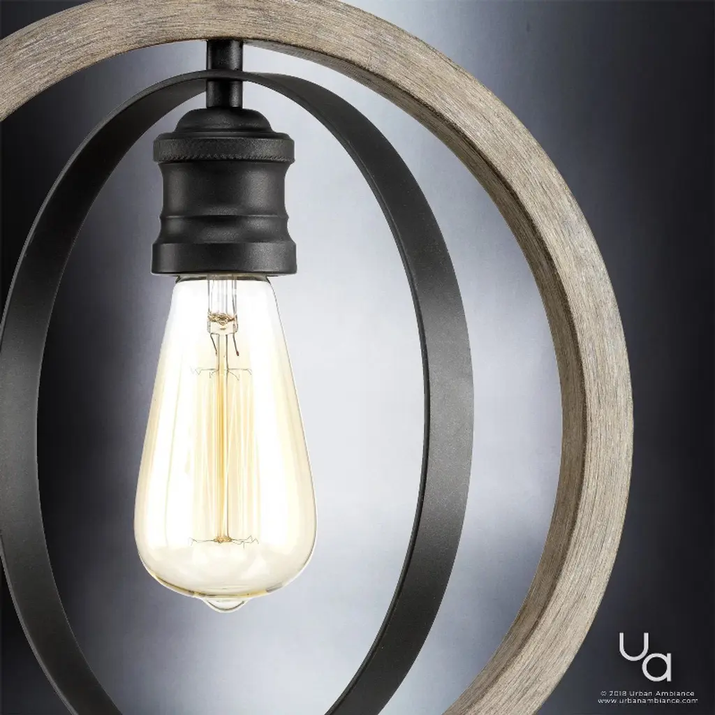 The Anchorage collection depicts a reminiscent armillary style to spark an authentic vintage allure indoors. The spherical framework elaborately showcases a dual-toned alignment to augment the charm intended. Outwardly, a thick globe-like ring takes on the sheltering responsibility to house much thinner overlapping inner metallic bands. The wood-stained outer ring delivers a perfect contrast to the metallic-toned interior hardware. Piercing through all the rings, knurled socket sleeves pop in the middle either as uplights or downlights. Popping vintage filament bulbs highlight a distinctive detail in the stunning silhouette.