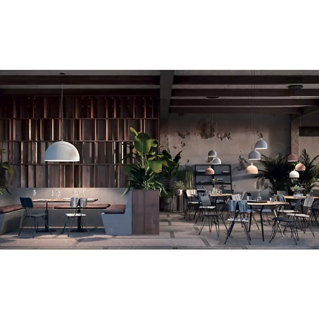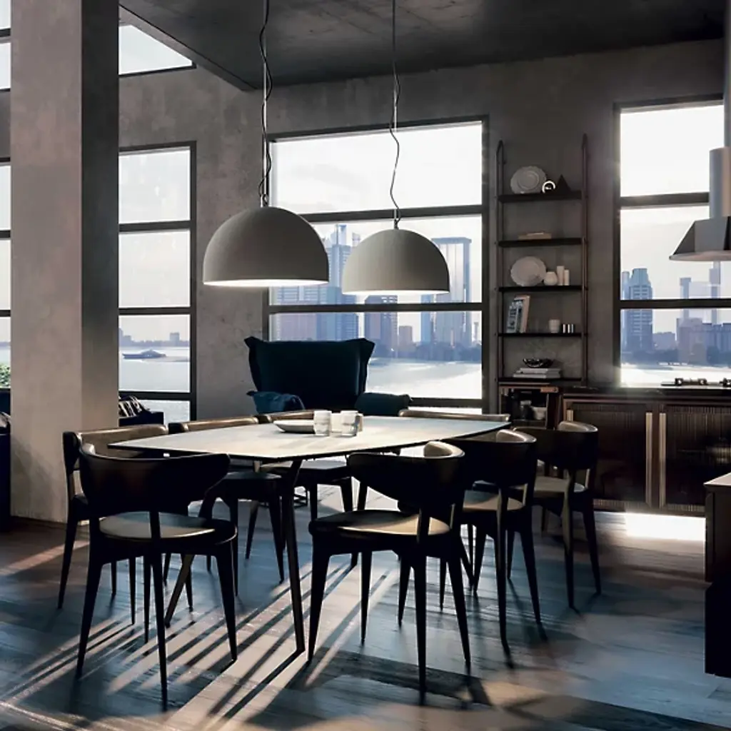 The Urban Concrete Pendant by Diesel Living with LODES takes inspiration from the bollards that emerge in urban landscapes, combining clean lines and solid surfaces together. Supported by a lifting hook, a spun, dome-shaped metal shade evokes the look of cement, creating the illusion of heaviness as it casts an even layer of illumination down onto surroundings. Extremely light and flexible, this design is a versatile, handsome addition to spaces.
