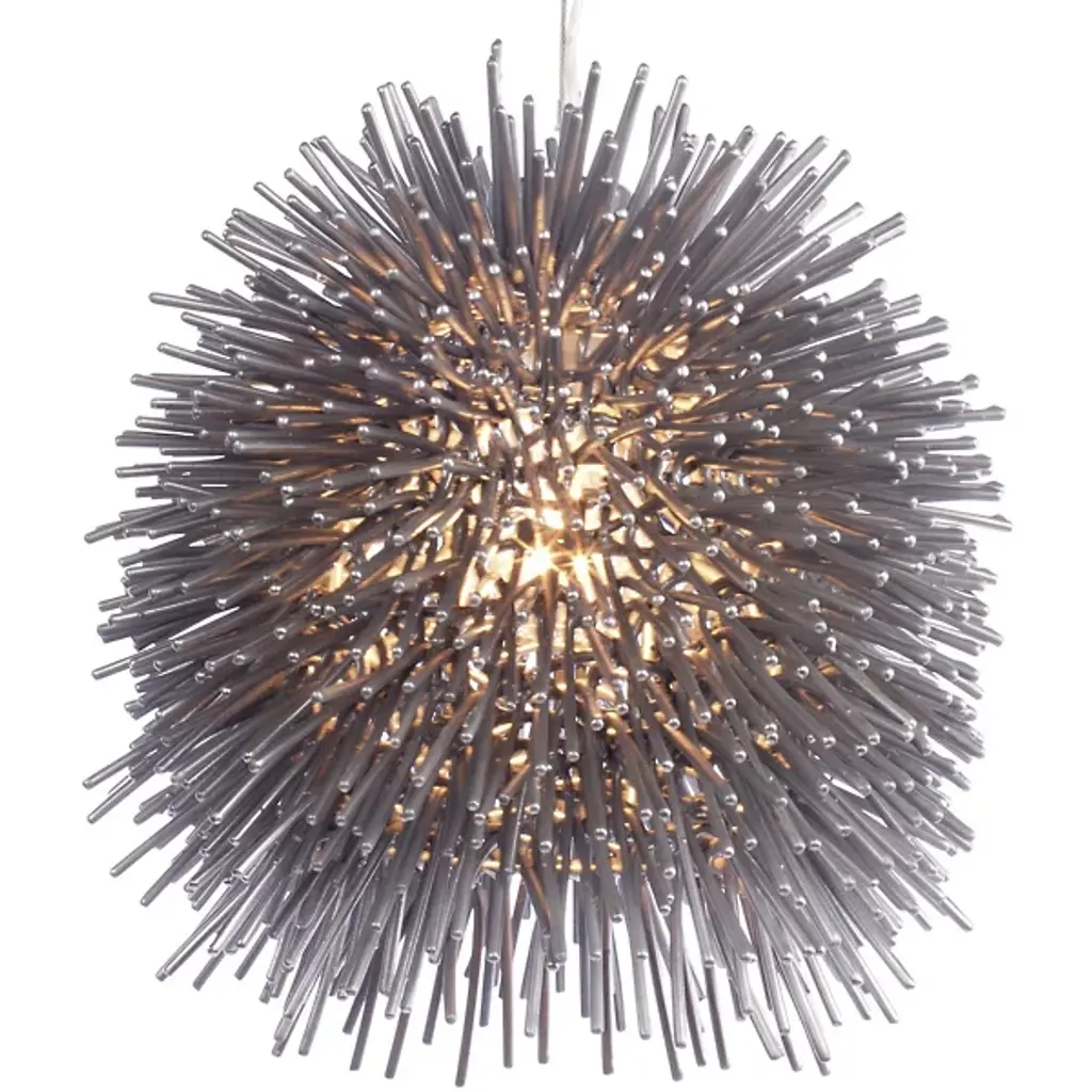 Despite its appearance, the Varaluz Urchin Mini Pendant creates a surprisingly friendly glow. It's inspired by the spiny sea creature itself and features spines composed of recycled steel. The steel is bent around a metal cage which gives it its shape. Hang several different finish combos together for a truly magical effect.
