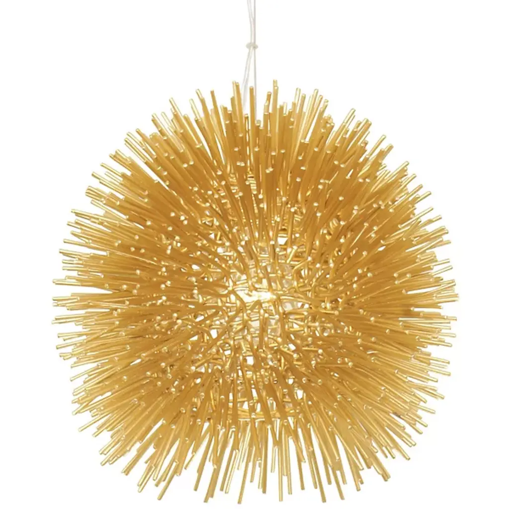 Despite its appearance, the Varaluz Urchin Mini Pendant creates a surprisingly friendly glow. It's inspired by the spiny sea creature itself and features spines composed of recycled steel. The steel is bent around a metal cage which gives it its shape. Hang several different finish combos together for a truly magical effect.